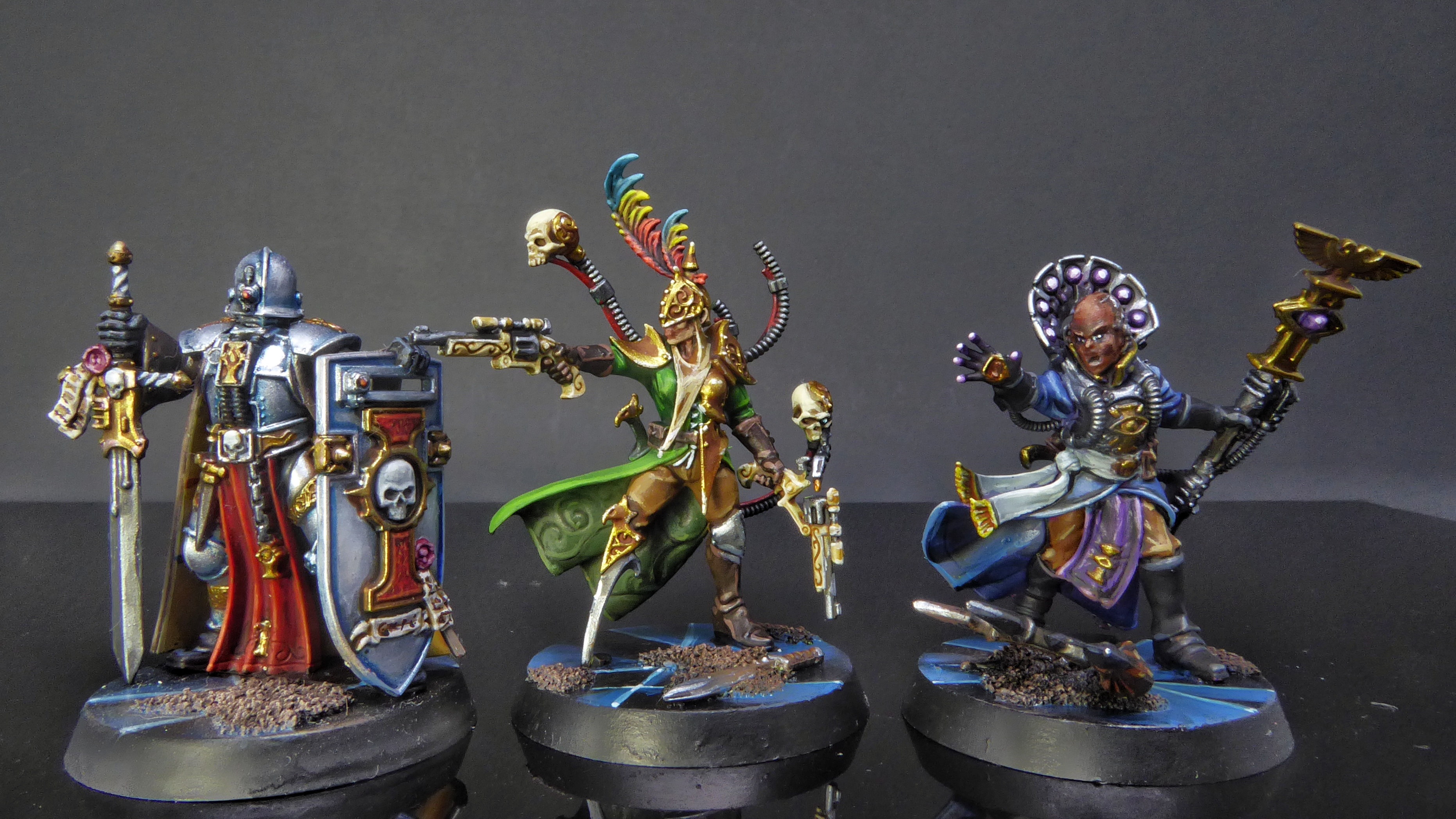 I was excited to paint Gotfret so I could test out an eventual Grey Knights scheme on him. There's something a little off with his armor but I can't quite figure out what it is. I'll have to try another test model before I settle on my blue-steel recipe. Murad and Aradia were both great fun to paint. I didn't really want to go too much in the official scheme with them, as I felt the original was too close to Janus Draik and Locarno from the main box set