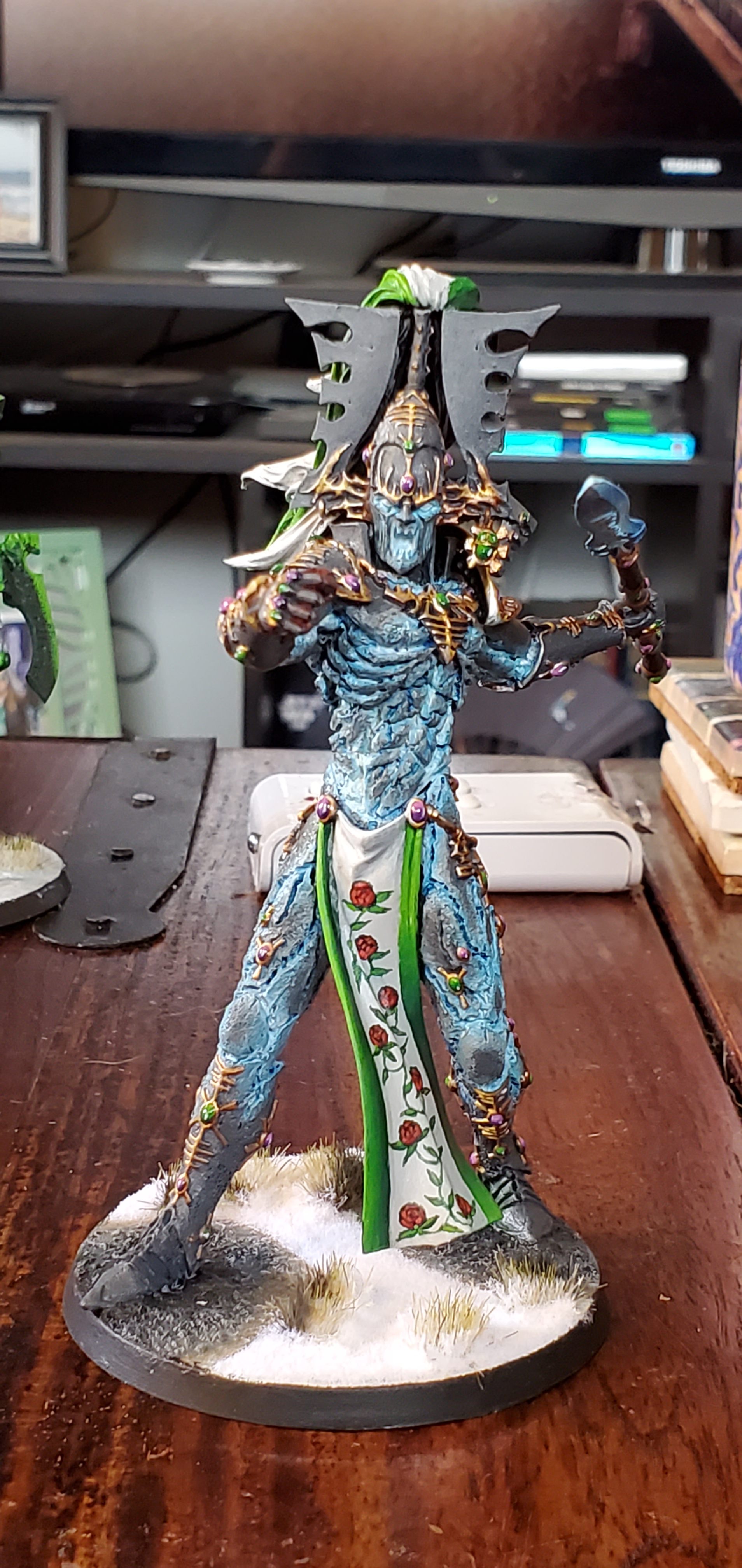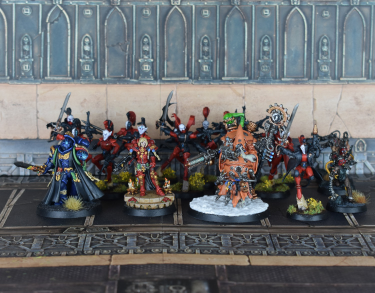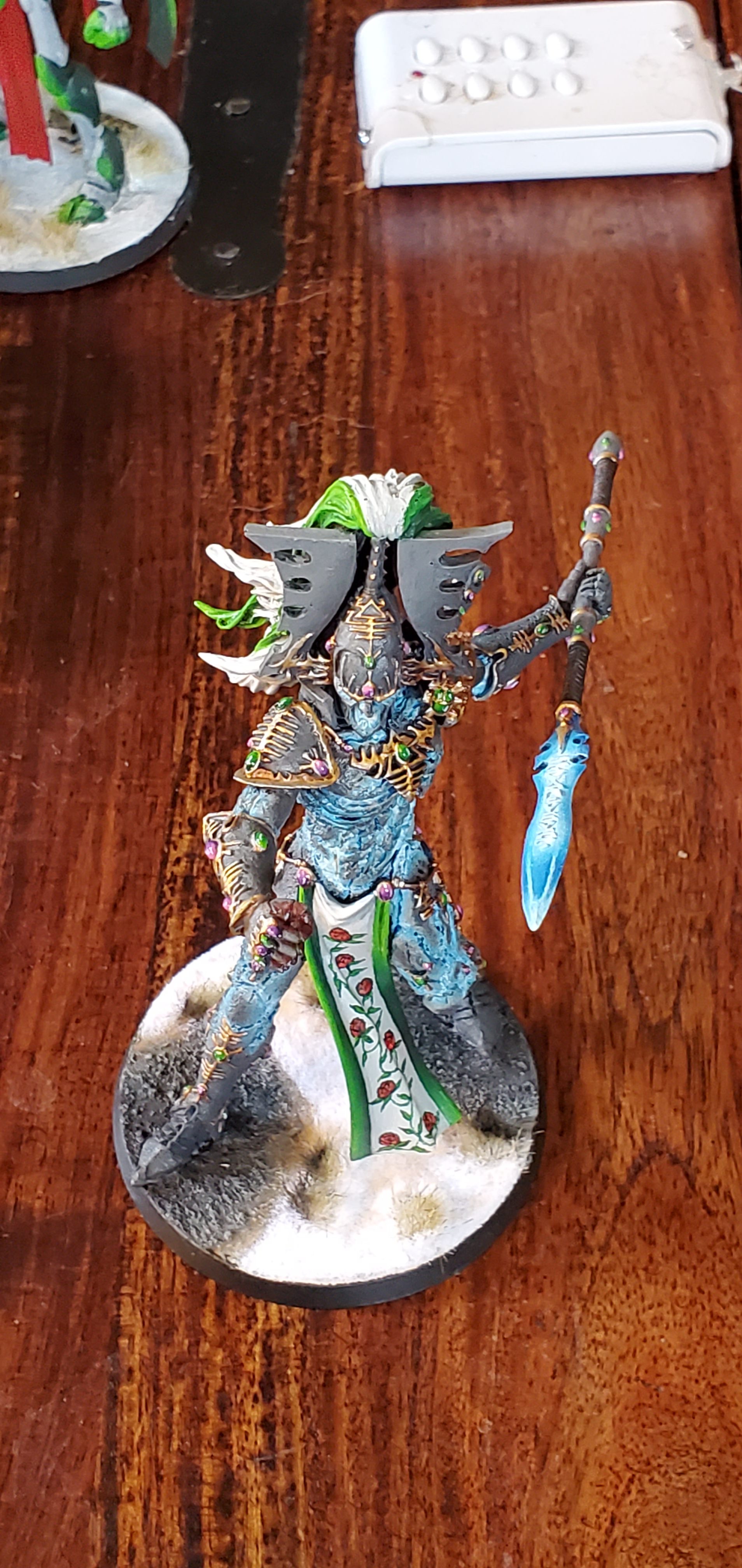 Worked a bit on my backlog (down to <20 models!). Finished up some work on the Avatar (roses) and finished by first of three Wraithlords. Also picked up some Phoenix Lords for fun - photos are bit washed out from white light glare, but in person I really love how these turned out. Next month looking at a couple more Wraithlords, Wraithseer, Nightspinner, and a couple of Harlequin models. You'll notice a lot of basing needs to be completed yet - will batch do that once I have a critical mass of otherwise completed models.