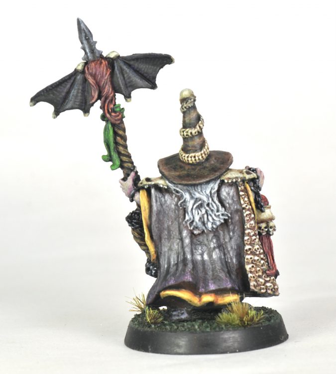 For Kemmler's cloak I detailed in some foggy trees to represent his Cloak of Mists and Shadows. This model was fun to paint, but there are so many details it looked very incomplete until everything was defined. It was hard to get a good feel on how it was going until he was almost finished!