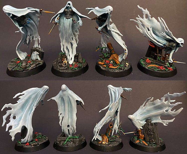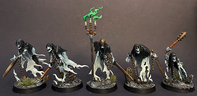 A miracle has occurred and I've managed to keep momentum going, rewarding myself with a myriad of frightful ghosts. I tried to space things out to keep things interesting, and tossed a couple future-friends in there to break up all the Nighthaunt Gloom and Black Templar contrast.
