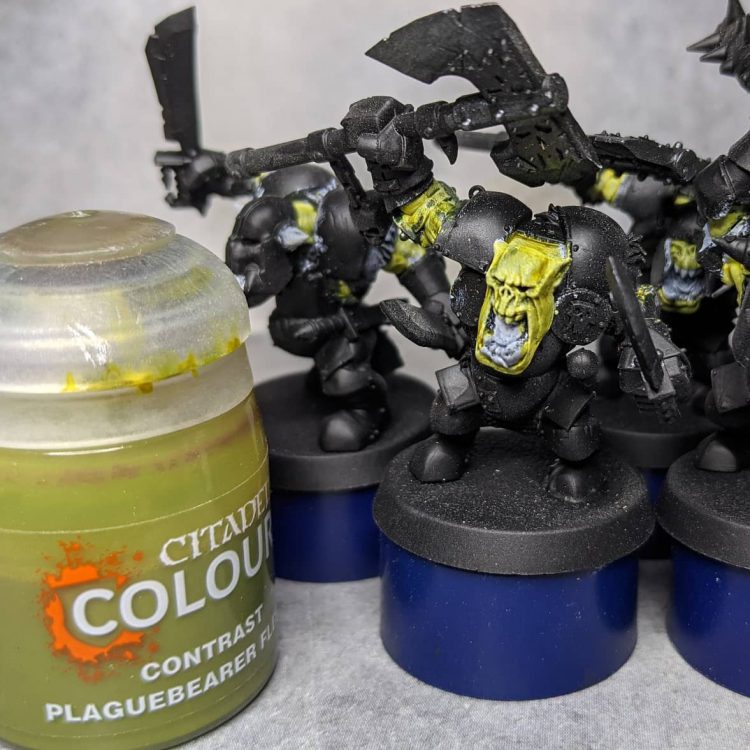 I've been dabbling with Nurgle in 40k for a loooong time, and I've finally worked out a scheme that I: 1. Like. 2. Enjoy painting. and 3. Can slap onto models with relative ease. I'm letting Golden High-Flow Acrylic Teal and Winter Streaking Grime take the wheel here. My test model was a Chaos Lord kitbash that I have had sitting around since the multipart Plague Marine kit was released.