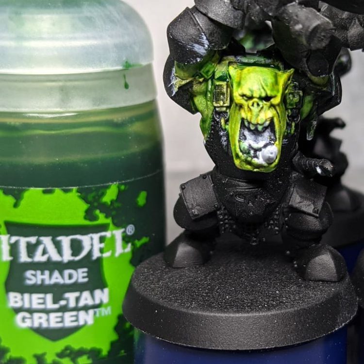 I've had a couple of people ask me about the steps I'm using for my Ork flesh and it's pretty much a couple of steps taken from R0ckfish’s Method in How to Paint Everything: Orks