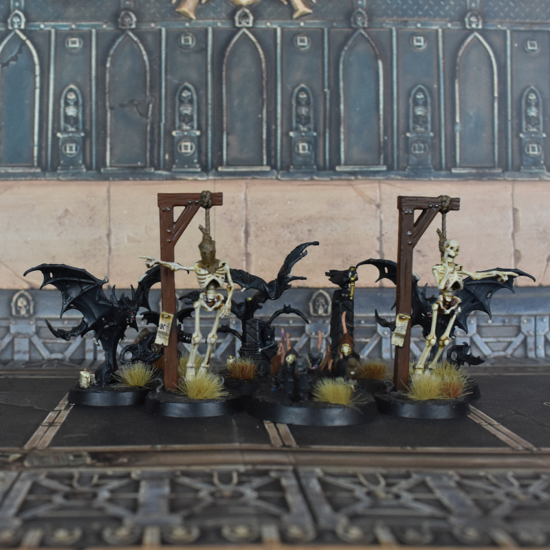 I was ably aided in this by the Cursed City box, which is full of nice, simple paintjobs - there's the Ulfenwatch, of which I painted 8/10, but then also a bunch of objective markers and rats and bats that can be done very simply indeed. These were great fun for doing a bunch of rest and oxidisation on.