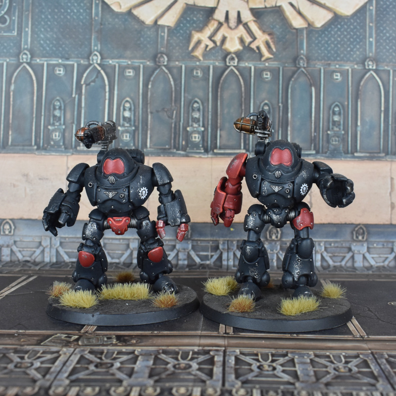 I spent the past month finishing my first Axiom Titan Maniple. I'll do a tutorial some day, if there's interest. I utilized methods predominantly from Richard Gray's tutorials, which you should check out if you want to paint tiny Titans.