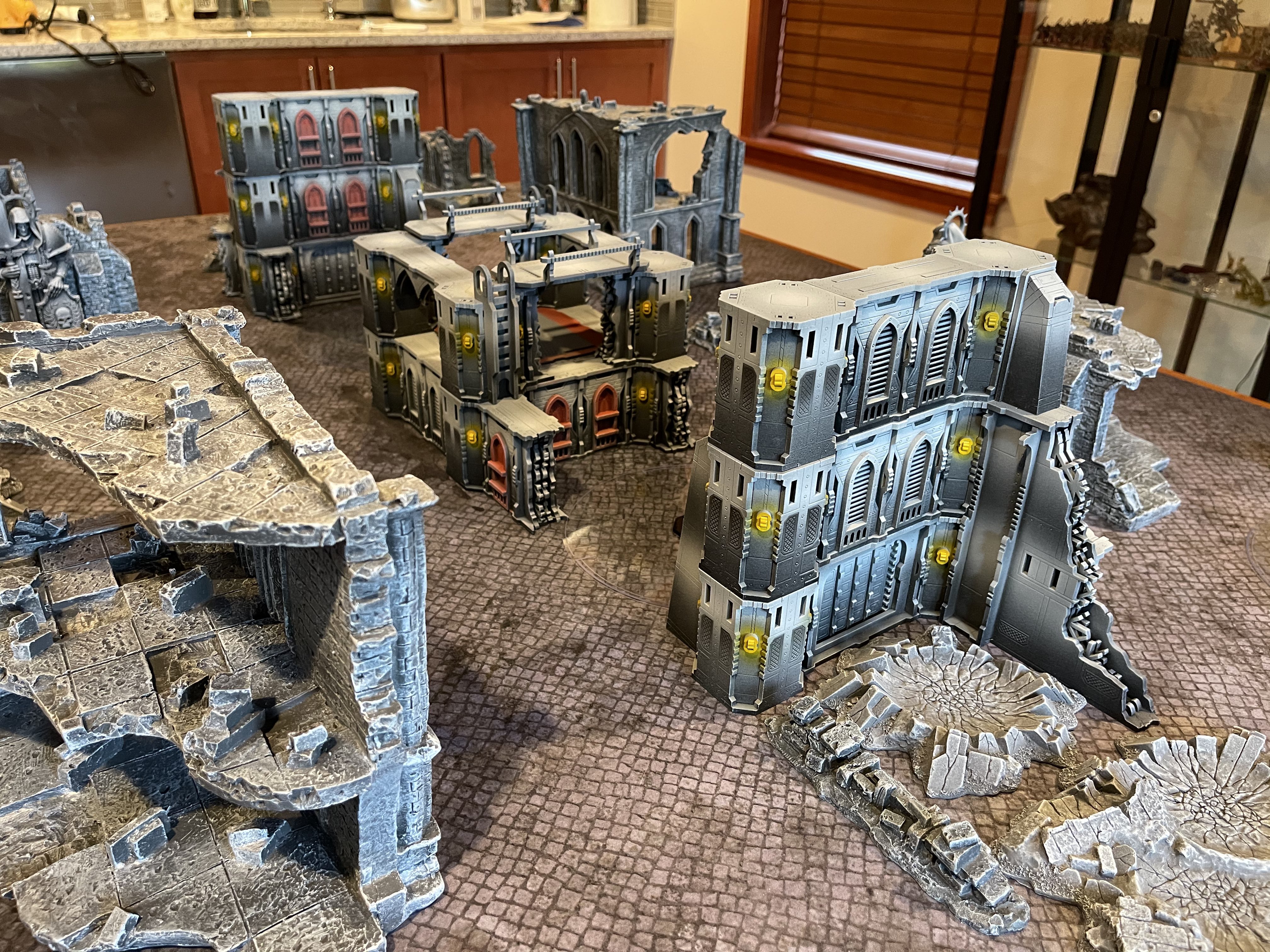 I painted a whole bunch of Deathray Designs MDF terrain. And despite painting all of this, this is only half of the DRD terrain I have ready to paint. And then I have that much again unassembled.