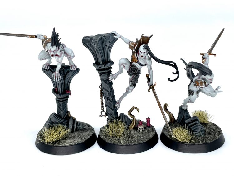 I got the goth party going with the Vyrkos Blood-Born, using a pretty similar scheme to Radukar from last month. I really enjoyed painting the Slaangor from Direchasm in a white scheme with thinned washes in the recesses, so did that again with these bois, using Carroburg Crimson instead of Drakenhof Nightshade. There's just something creepy about it I really dig. I kept up the same rusty metal scheme as I did with Radukar's bunch last time, as establishing a repeatable process is pretty key to painting any army, gang, or warband. Speaking of repeating a process: