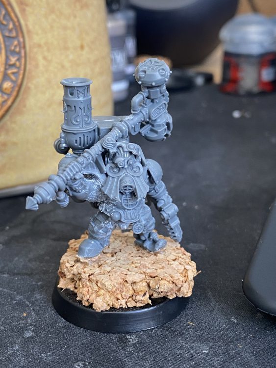 Yet to be painted is the second Endrinmaster for the army, I didn't want this one to be identical to the first so chopped him up, gave him a mechanical leg (totally not because I dropped the normal piece on the floor to never be seen again), and switched the arms up to give him a pistol and be chillin with his hammer. Just needs to be cleaned up a bit more.