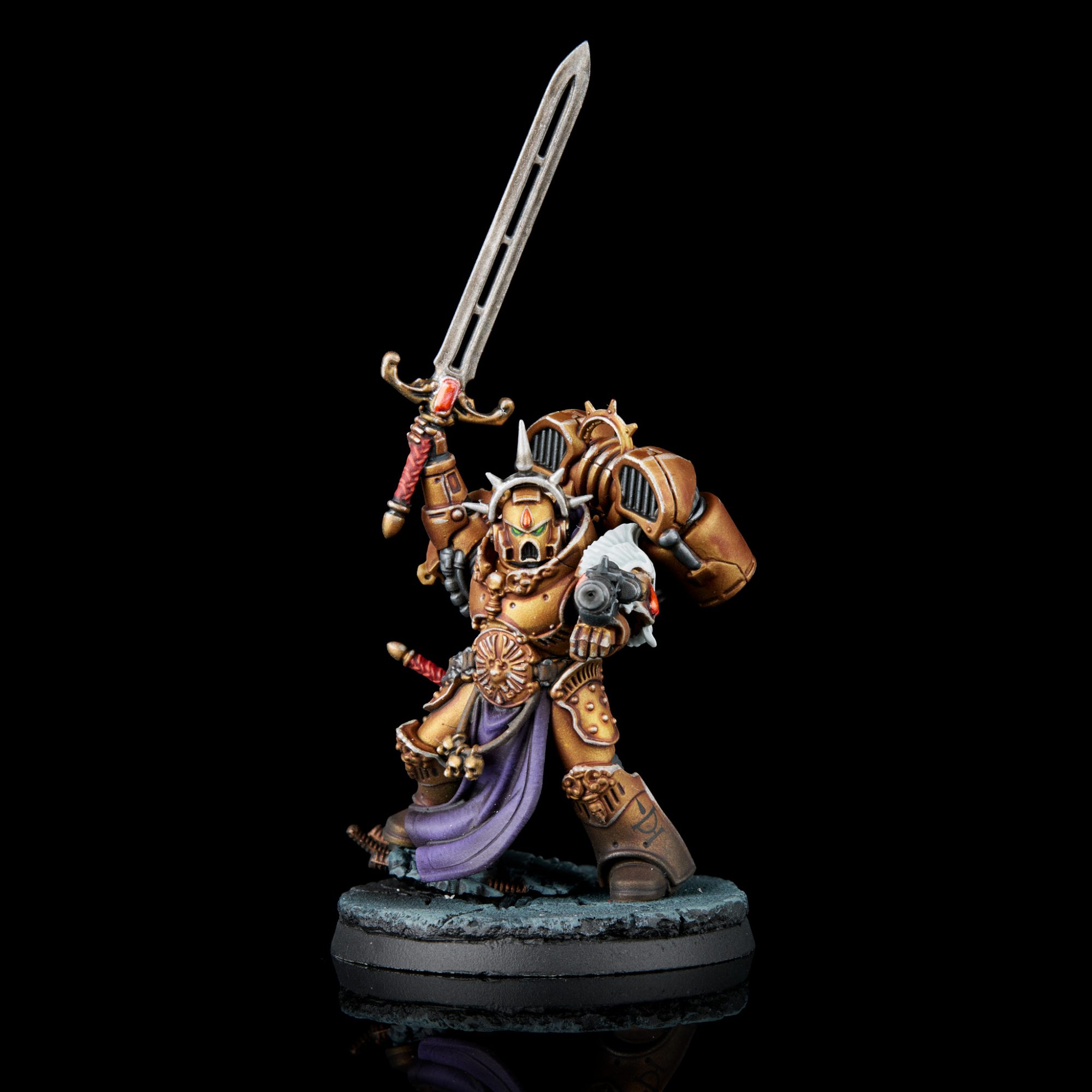 Another headswap that was rattling around in my own, currently unswapped head, was this one for the Bladeguard Ancient. I'd picked up some Grey Knights heads back in 2017 for my at the time all-smol Black Templars, and this one with a cowl had been floating around my bitz box since. Those 5 Bladeguard Veterans had really taken it out of me, and I figured a quick character model would be fun to blaze through. I knocked this guy out in like 3 days, and had a ton of fun doing so. I figure that by the time I actually get through much of my Templar backlog, I'll be able to have this dude and a Marshal ride along in a pair of Impulsors with a pair of 5-man Bladeguard squads, and then dump them all out and really mess up some dudes. That second squad of Bladeguard is still very much underway, so look forward to them in June!