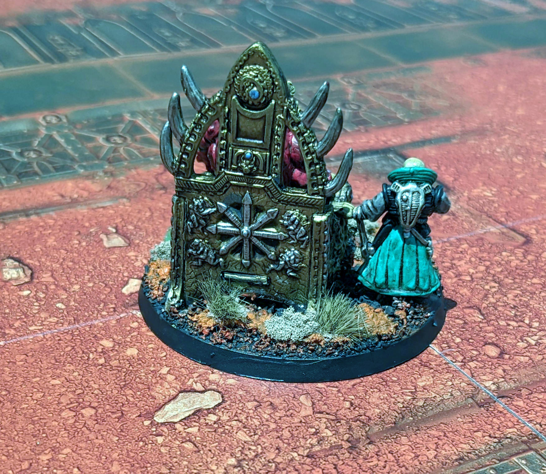 I've had this oldhammer Patriarch forever - I got it on Etsy for $20 and just never did anything with it. With Wars of Faith you can have an Idol so I decided to paint him up to use in that. He's on a big 60mm base with his assistant. I'm super happy with how it turned out.