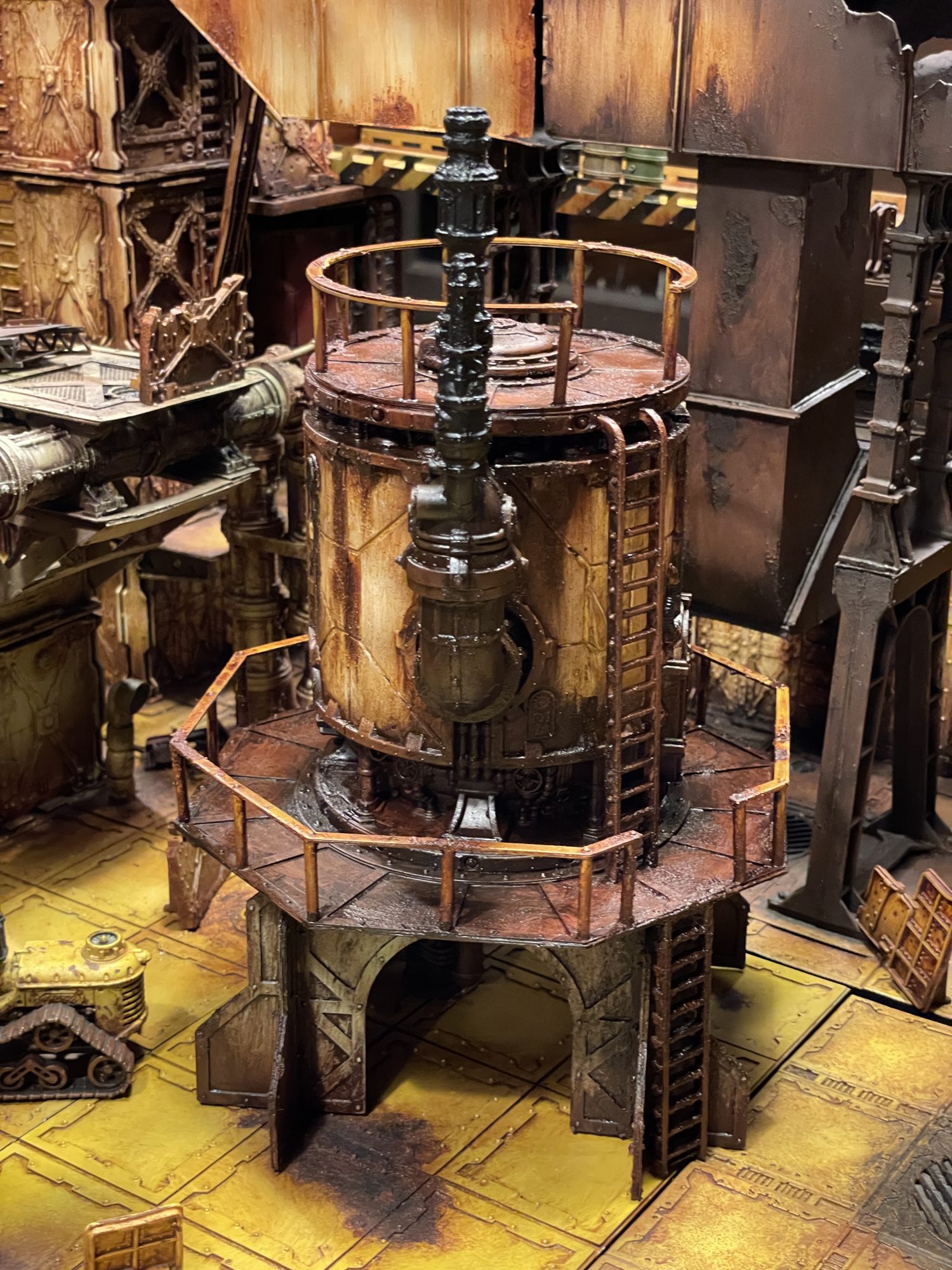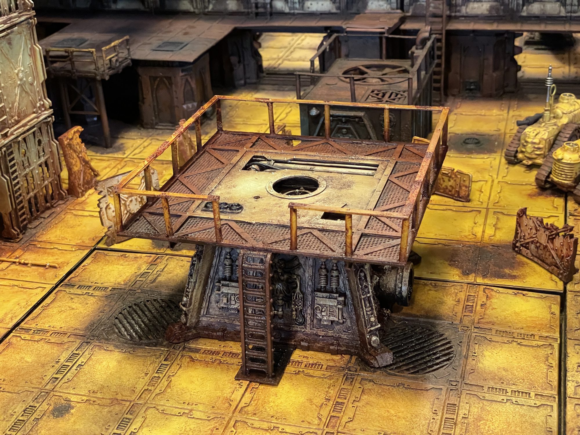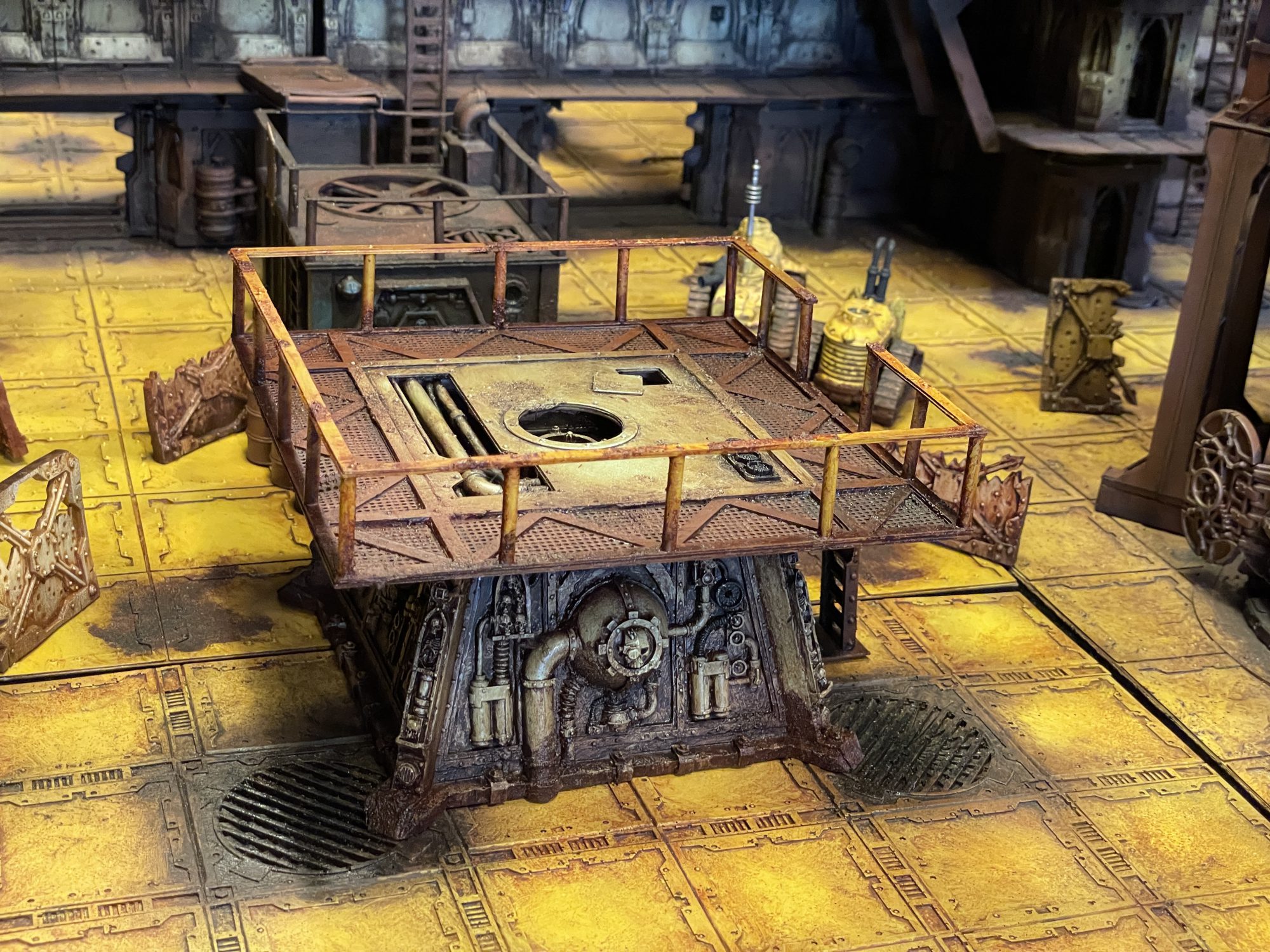 This platform is based on the old resin Void Shield Generator, that I've had sitting around and primed for 5+ years. Feels good to take a piece that I was never going to use into something cool. I'm sure I'll find a home for the other parts in my Necromunda terrain at some point. The top and railing for this was all diecut as well.