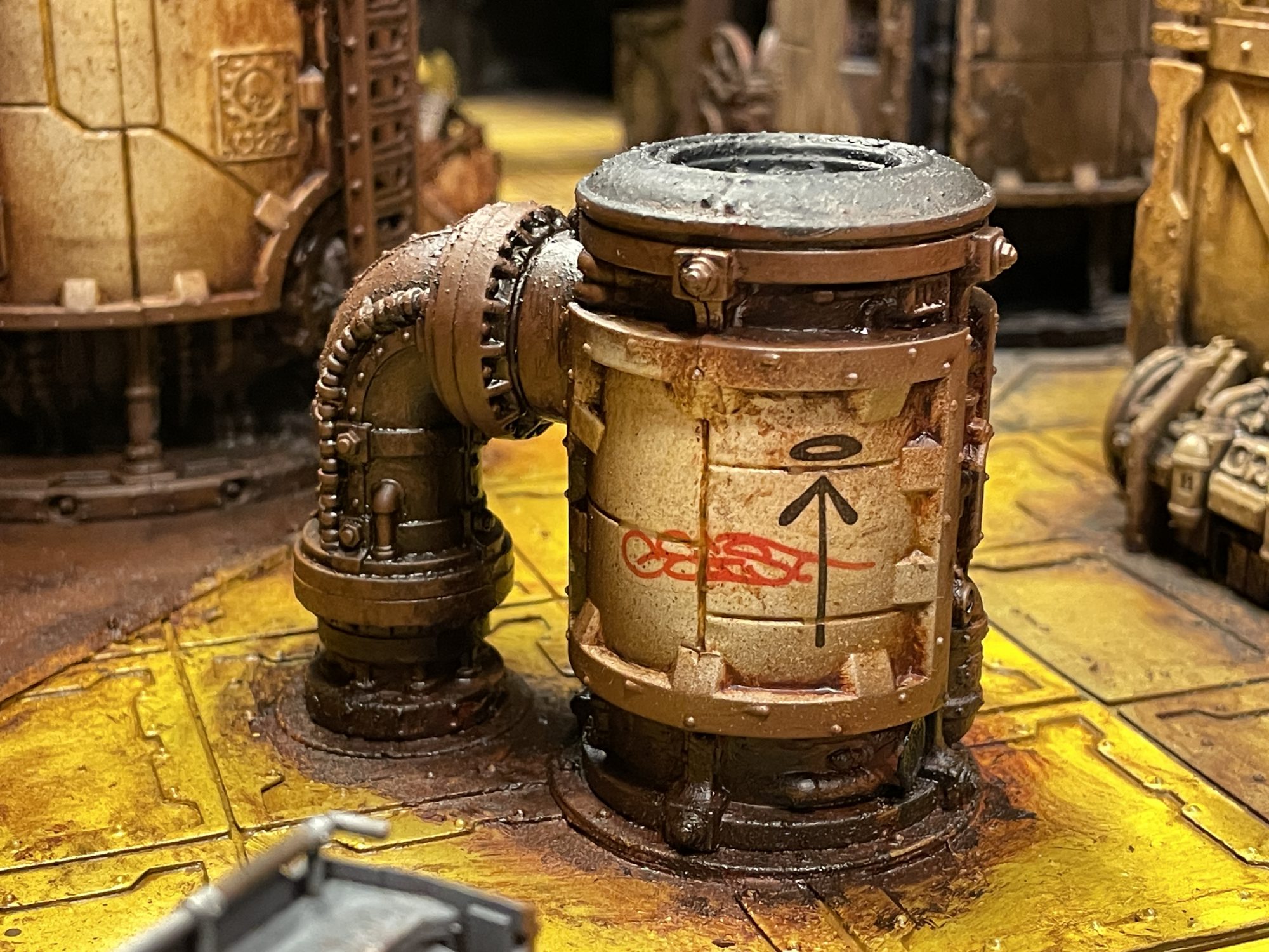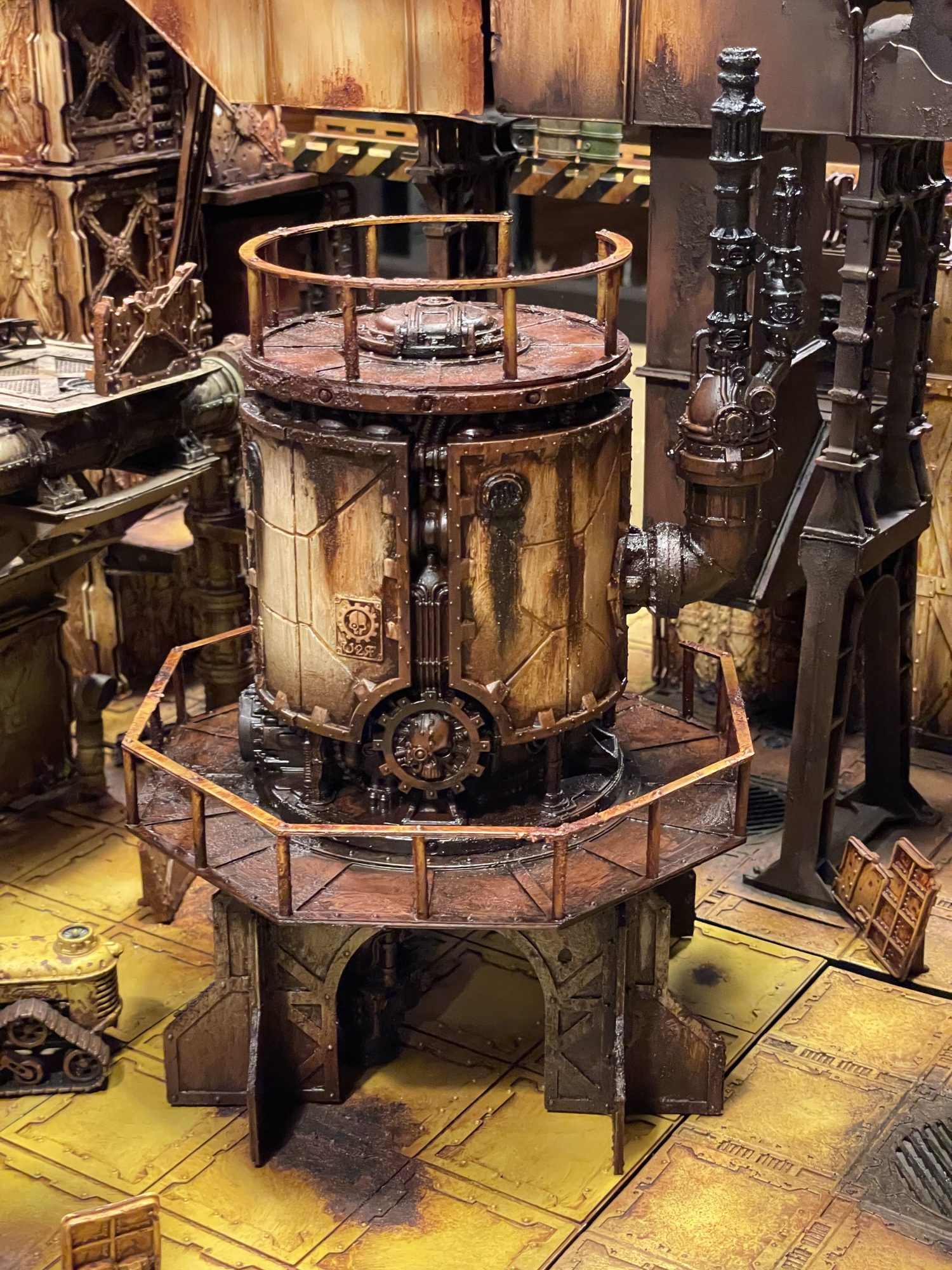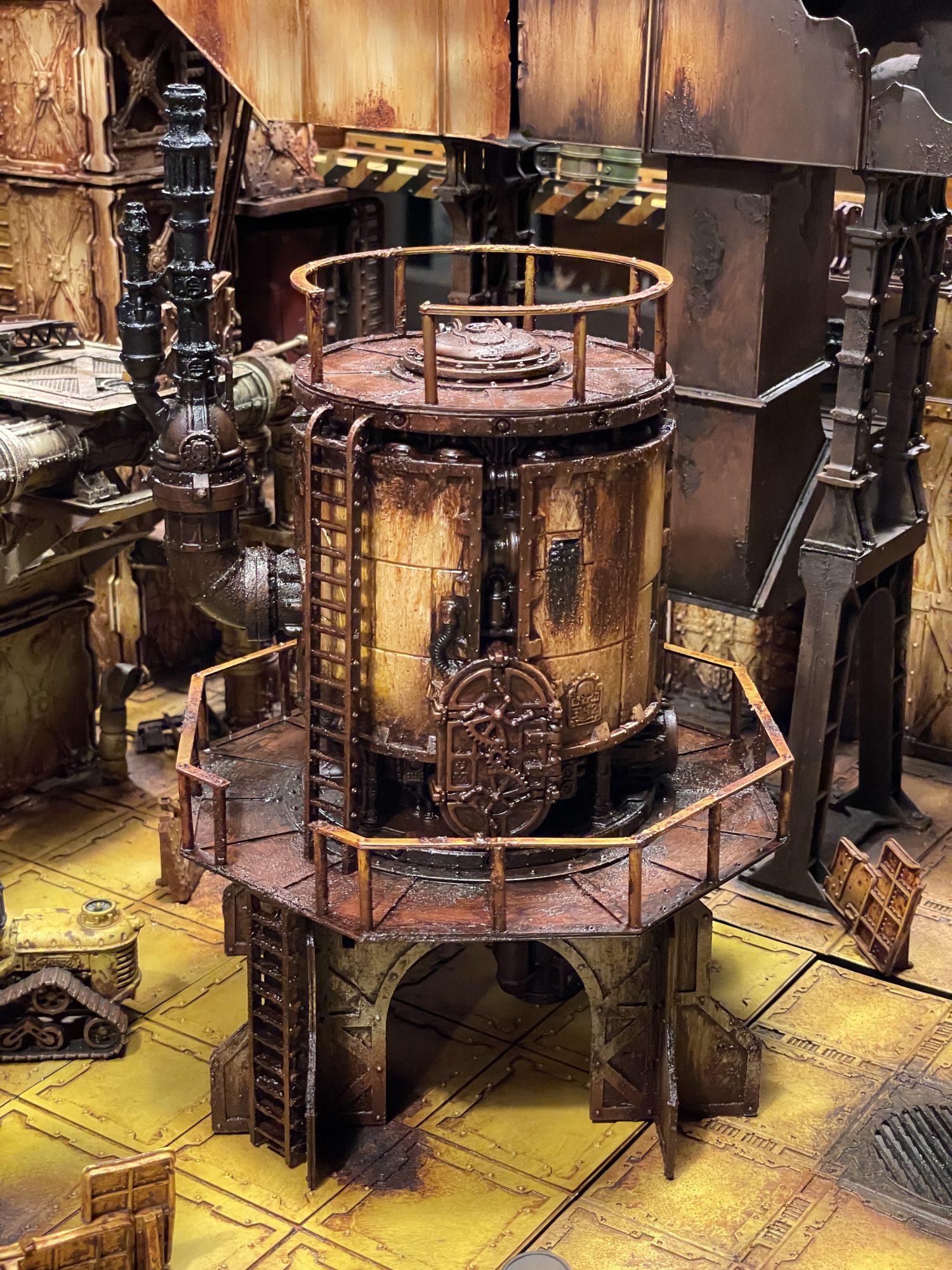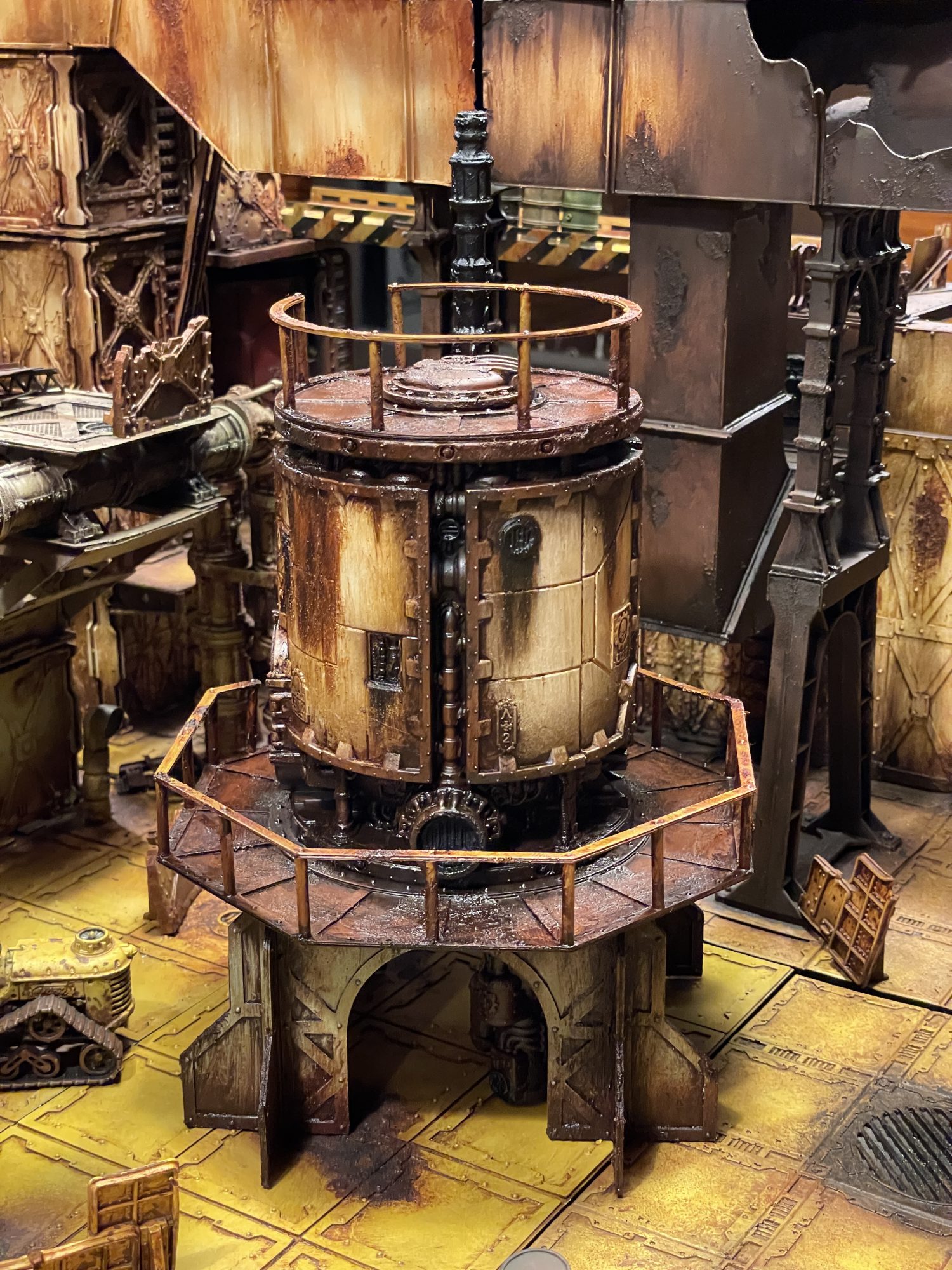 This platform is based on the old resin Void Shield Generator, that I've had sitting around and primed for 5+ years. Feels good to take a piece that I was never going to use into something cool. I'm sure I'll find a home for the other parts in my Necromunda terrain at some point. The top and railing for this was all diecut as well.