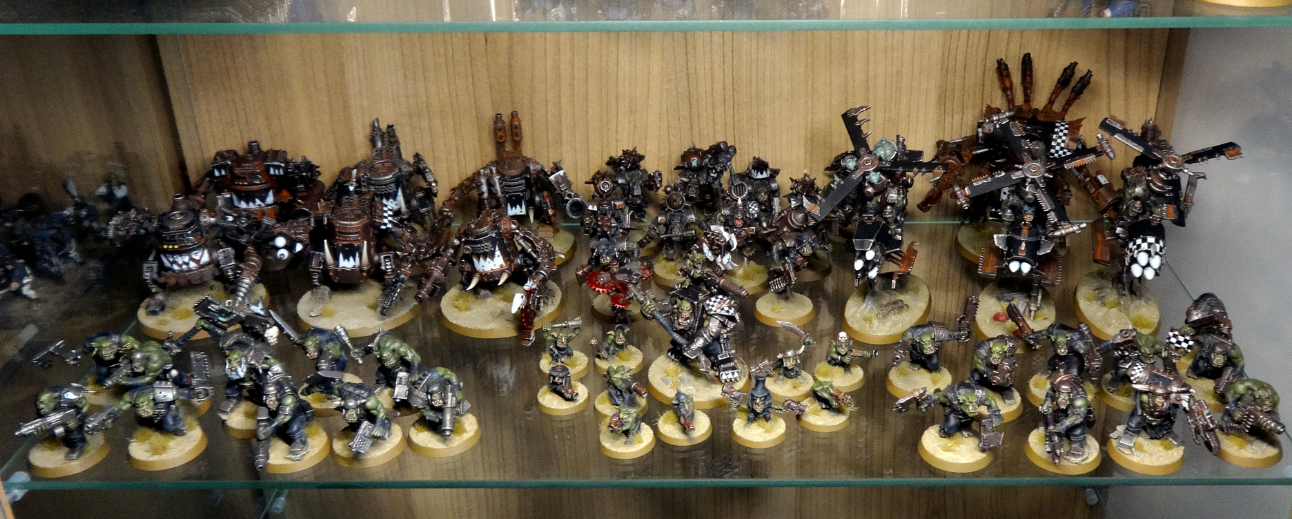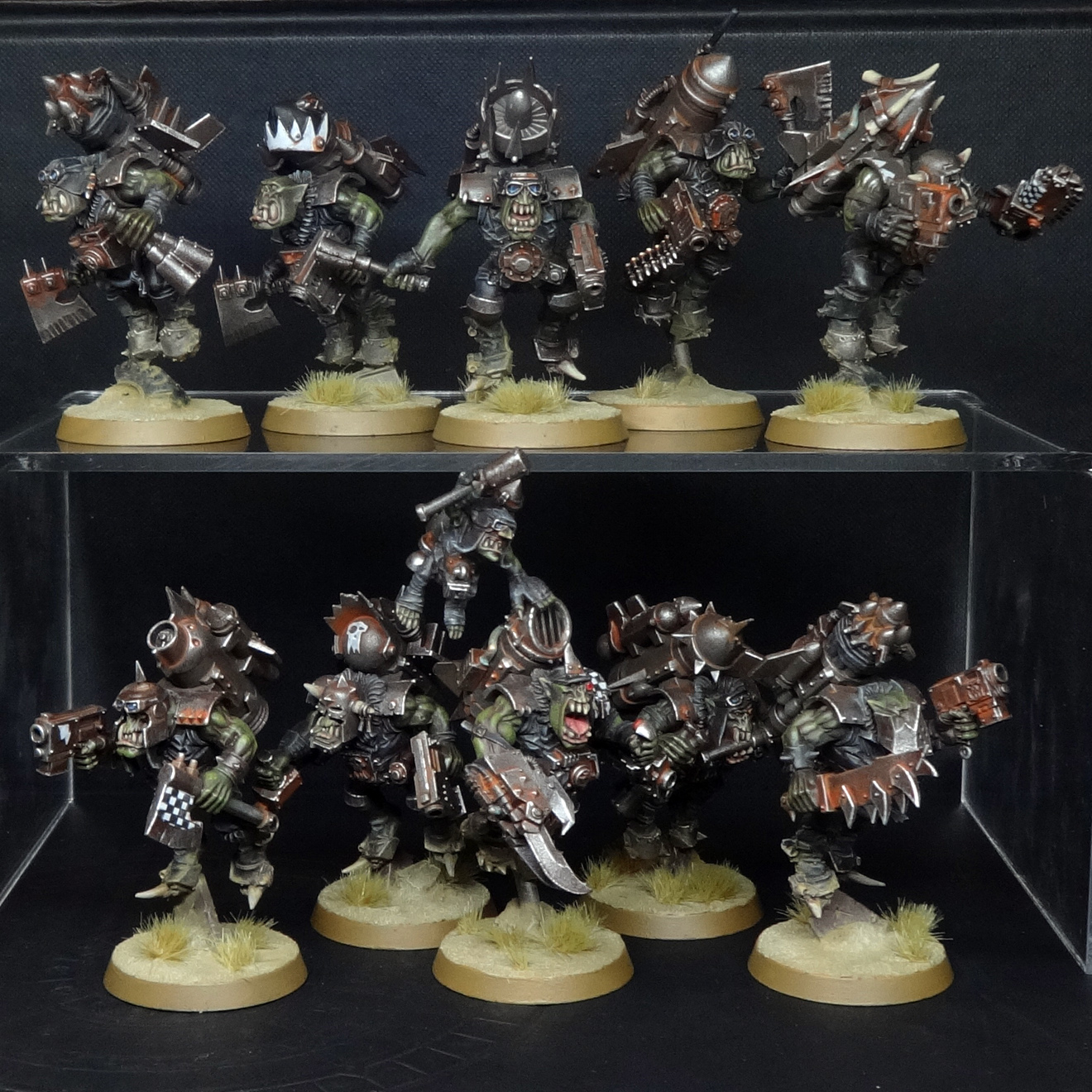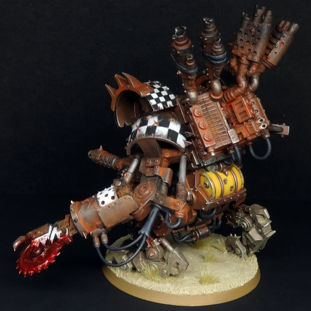 This month I've cracked on with the Goffs I started in February, and have just passed the thousand point mark. This is a Crusade army primarily designed to be fun to play against. As such, when I added three killa kans to the army I glommed them on to the existing unit, meaning they'll trigger the blast rule AND be more likely to run away in the morale phase. On the flipside, that's 30 T5 Sv3+ ramshackle wounds, which in the extremely casual meta I'm playing in does give people something to chew on and/or worry about. I giveth, and I taketh away.
