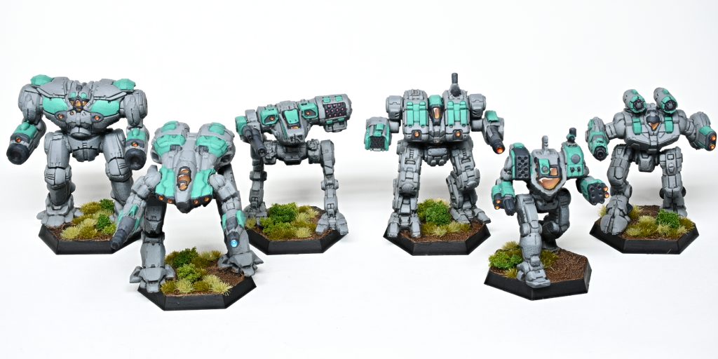 Next up is a small pile of Battletech models, starting with this touch up of a prepainted model...