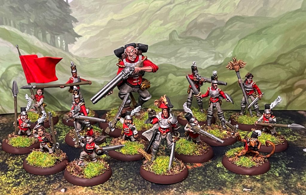 intended to be Imperials but the uniforms fit so well I thought why not! Rules-wise the game doesn't really specify between human or halfling, you just get a stat block for the type of model like "Imperial Trooper" that you just buy equipment for. It rules.