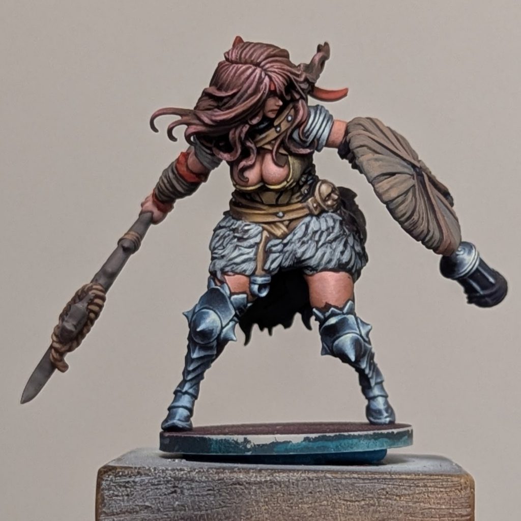 Next up, I have, you guessed it, more Kingdom Death! This time, it's a WIP of the Fighter from the Echoes of Death 1 set. I have a small painting setup at my office and will sometimes work on a model I leave there during my lunch break on slower days. The limited palette (only a few primaries using Liquitex Gouaches, white, black, and some skin tones) is a fun challenge and I'm really pleased with the last couple models I painted that way. She is almost done, maybe about 85% haha then she'll go home to get based, and that'll be Echoes of Death 1 done!