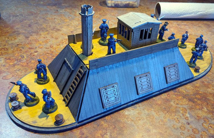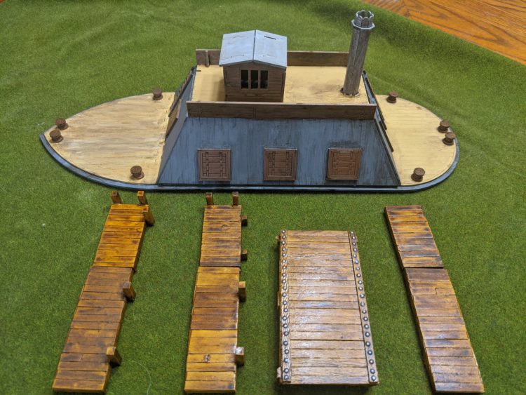 First I wanted to finish this MDF Ironclad from Sarissa. I'd like to use this for ACW games where I'm doing raid scenarios in the North Carolina / South Carolina region. The ironclad won't really have rules, it'll mostly be a static terrain piece, but it'll definitely add to the game. You can see the sailors I've painted before crewing it in the first pic. It's not exactly to scale but it'll work nicely. The second pic shows some piers that I finished as well. I can use these for a variety of games ranging from Blood and Plunder to WW2.