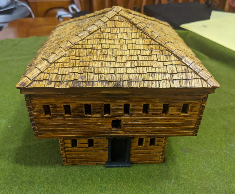 This blockhouse is from Sash and Saber, released for their recent FIW line. I used contrast paints on it almost exclusively just to get it knocked out. It'll be good for FIW but also ACW - Union forces built a ton of blockhouses to hold local areas and keep guerillas at bay.