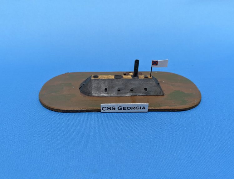 Last I have some ironclads I finished in 1/600 scale from Thoroughbred Miniatures. These are gorgeous models - I think I'll probably own the whole line at some point. I mostly just picked ones I liked the look of, not going for a certain scenario. The CSS Georgia was actually so poorly manufactured that it couldn't move and ended up being a floating battery. I'm still looking at rules but right now I'm leaning toward