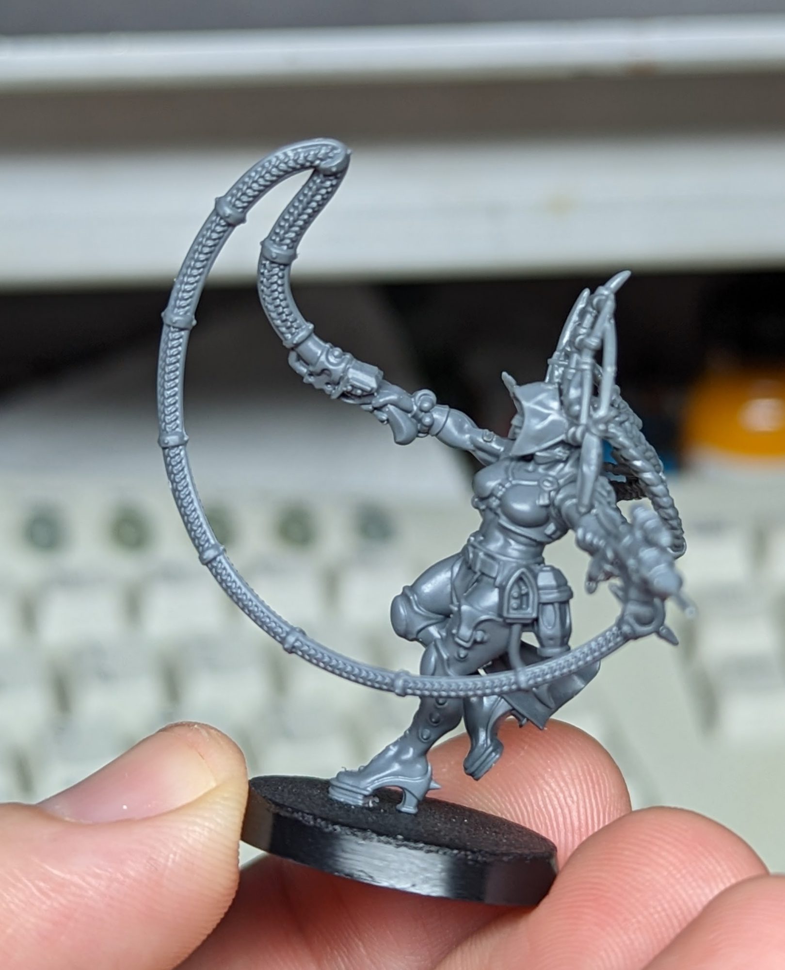 At the same time that I did that I also worked on a version of the Death Maiden who would be on foot. Kitbashing the shock whip into a laspistol was a challenge but I think the end result worked out well. I also did my best to match the clothing to that of the biker.