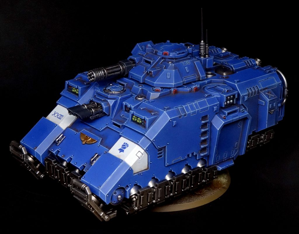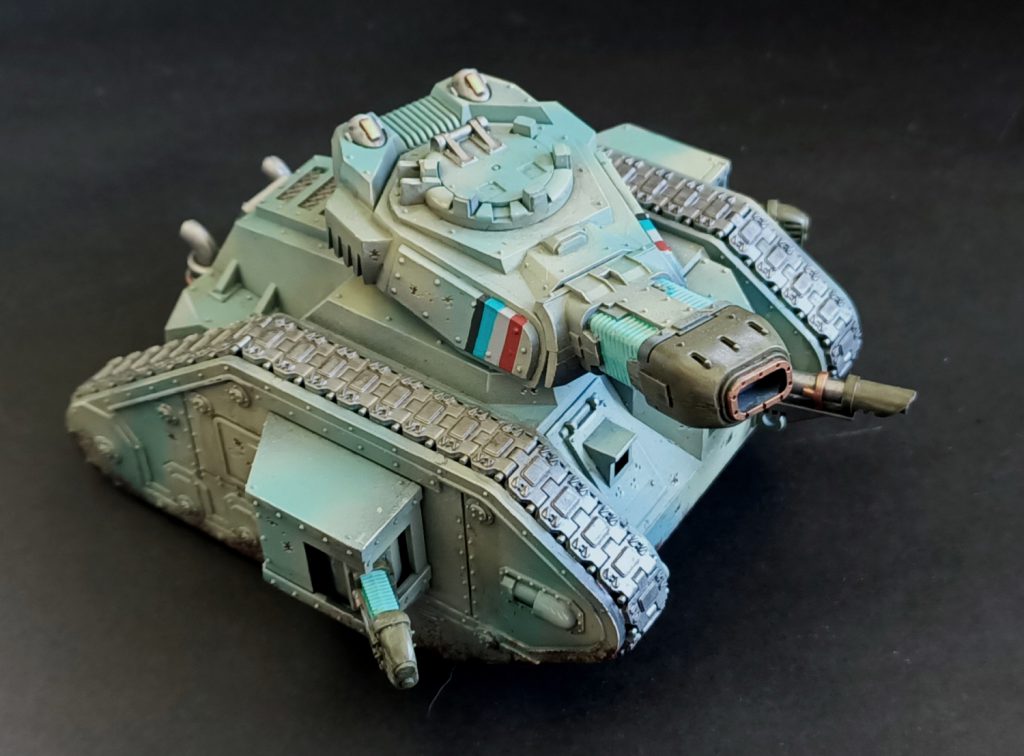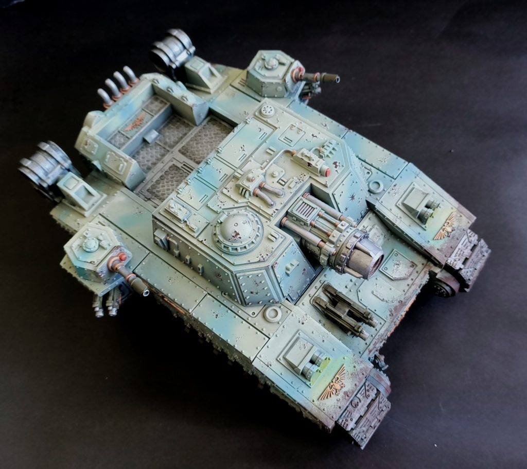 Finally, TANK. Tank big. Tank not have too much glued to it, since the 10th edition rules have mercifully consolidated the Repulsor’s five million weapon systems. Me like tank.