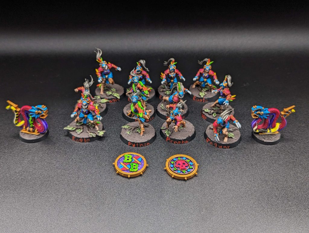 Blood Bowl is my second Games Workshop love, so when Amazons were revealed I was excited to add another cool team to my collection. I decided on a red and blue scheme and named them The Amazonia Rangers as a hockey reference and a placeholder that ended up sticking after I named each player as a gender-bent version of existing hockey stars.