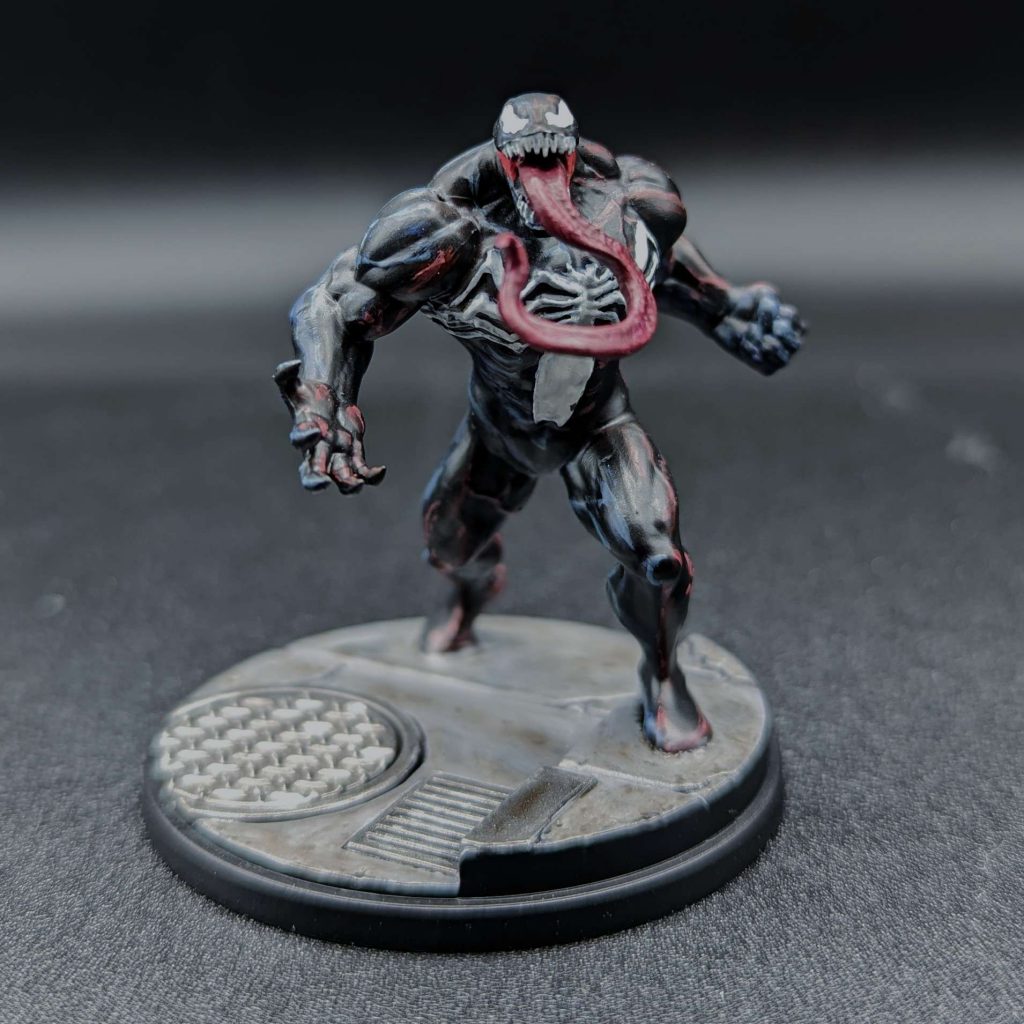 I had a pretty specific vision with Venom and I think I pulled it off. I was specifically aiming for Spider-Man: The Animated Series Venom with the blue and red highlights quartered on his skin. It was kind of awkward to do in three dimensions, but I ended up with something I'm really happy with.