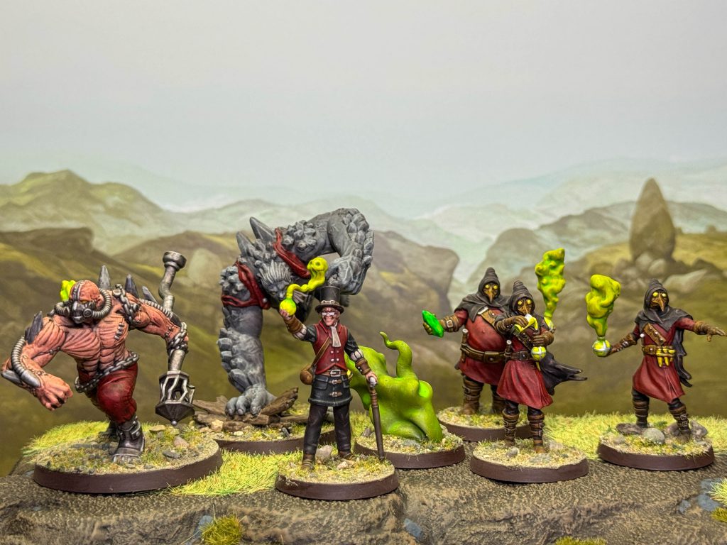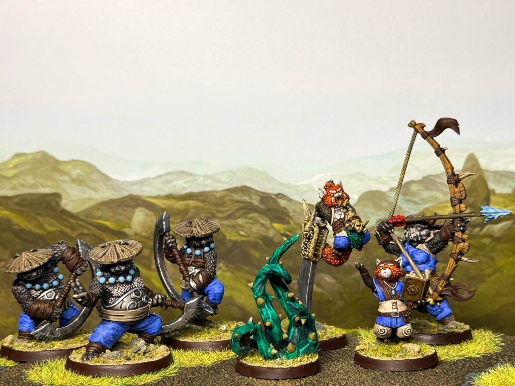 The two warbands encompass completely different aesthetics to each other, the first being what I best describe as a sort of flesh-horror-alchemist warband of freaks and the other being pandas, including red pandas, which just absolutely rules. Like the vast majority of my painting I had basically no idea how I wanted to paint these, outside of the more obvious colours, until I started putting down onto them but think they've both come out pretty well; when I'm working on smaller model count warbands I like to spend a bit more time on each model to try and paint in some texture to the cloth especially. Only when writing this, just now, did I realise I accidentally made a classic Red vs Blue scheme between these two! The red on the Umbral Veil (that's the alchemists) was to help show that they're the bad guys, I haven't read the lore yet but there's no way that these are the