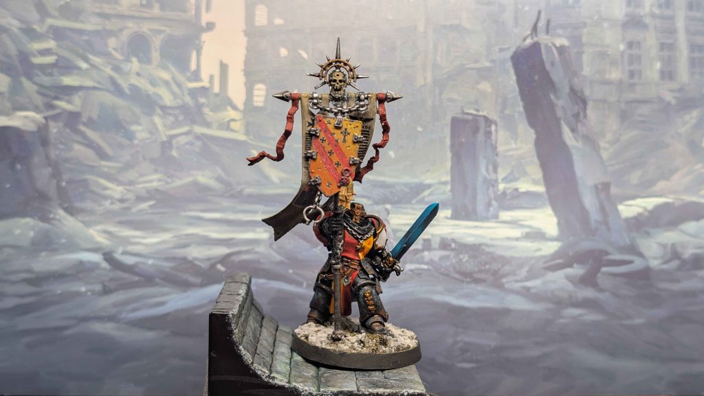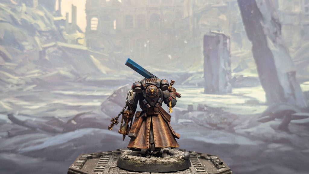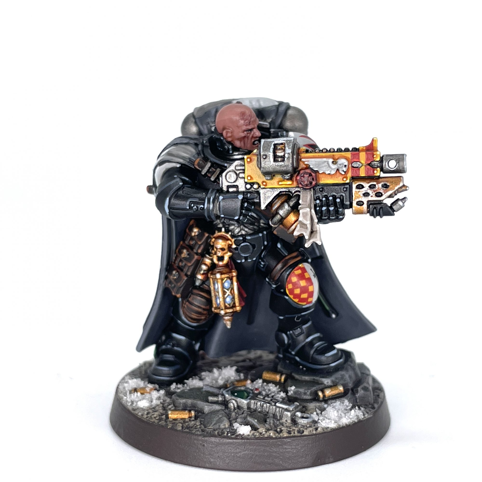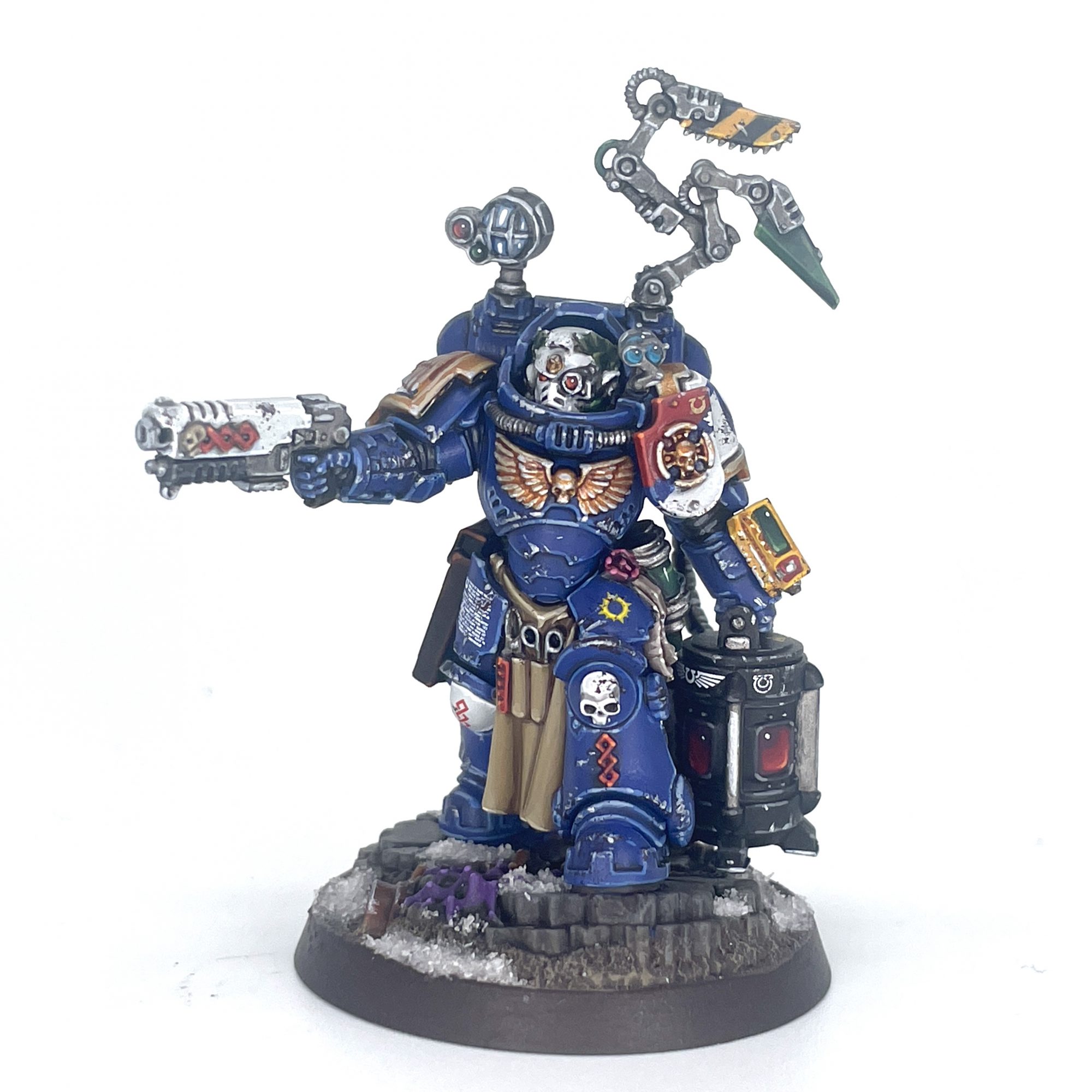First up is Cato Sicarius; while I was late to the party for the actual model review, after a headswap I was happy to get painting this particular Ultrmarian hero. After a headswap to make him seem more like a storied veteran and less like an upstart jerk with a Macklemore haircut, I got to work. He’s a genuinely difficult model to paint - not just because details like his filigree are hard to work out and cleanly delineate, but because of how the layers of detail on this model make it physically hard to get a brush around. Ultimately I’m very happy with the end result, even if it was a bit of a headache to get there.