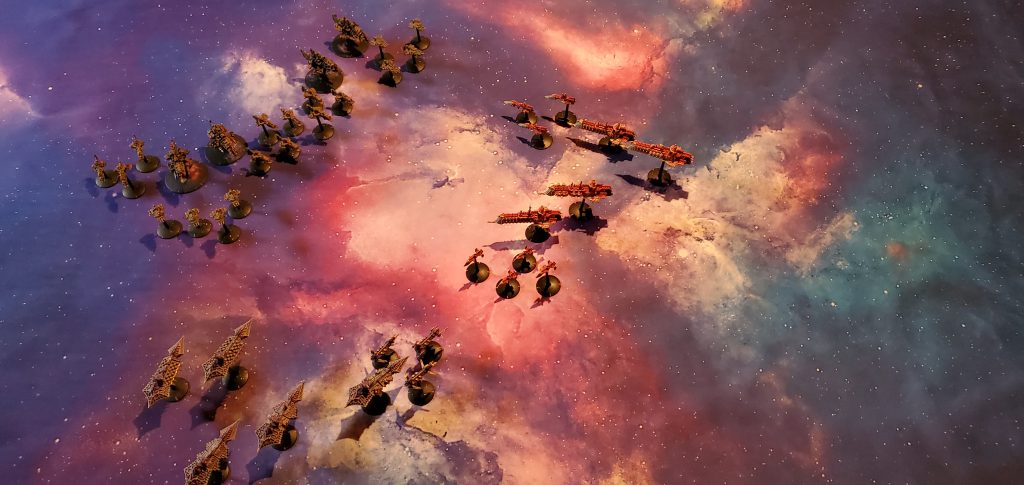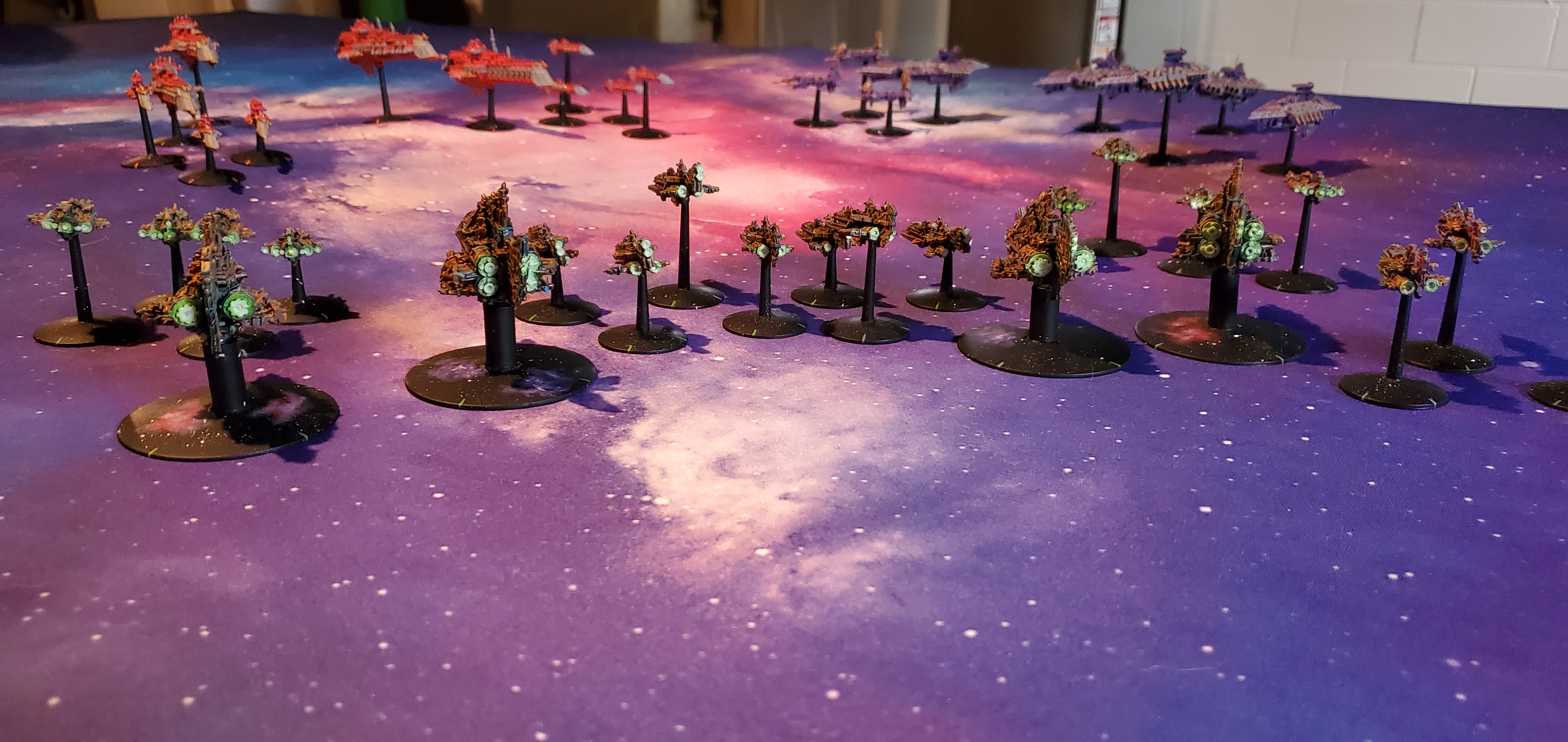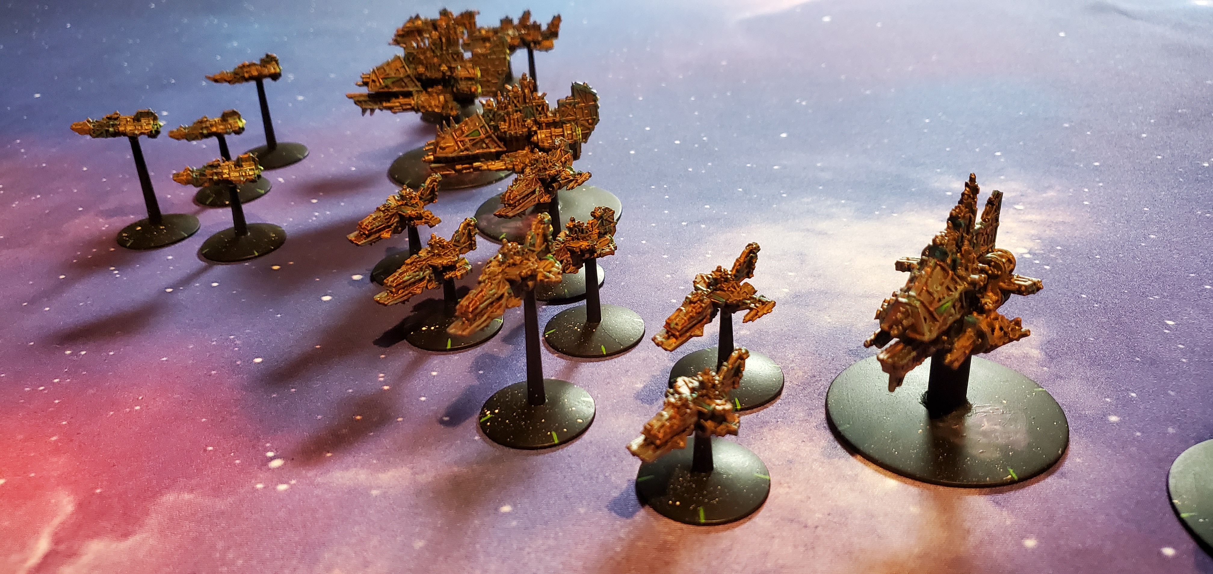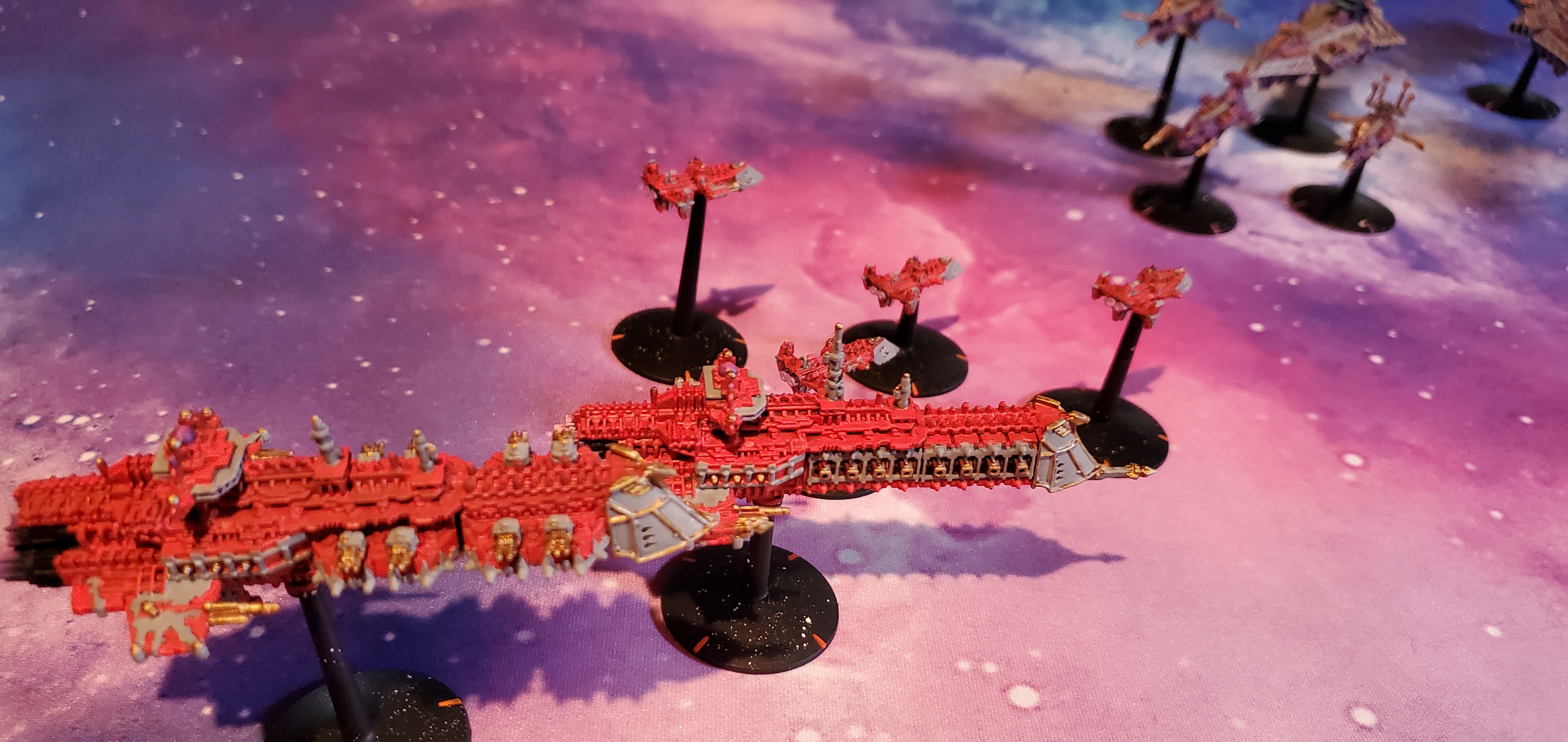 Next up: 1x Imperial Apocalypse Class Battleship, 1x Repulsive Class Grand Cruiser (Chaos), 1x Gorbag's Revenge (Orks)