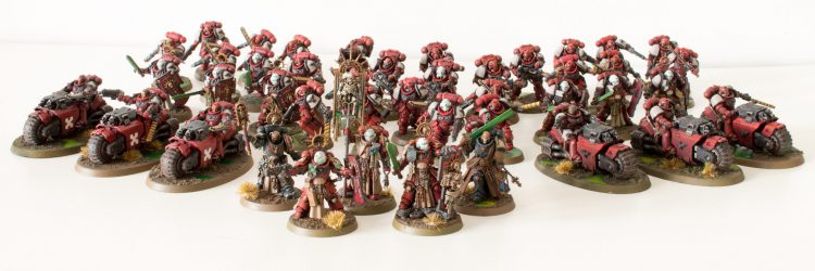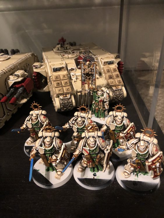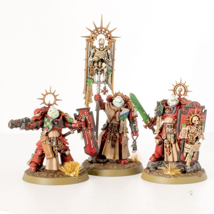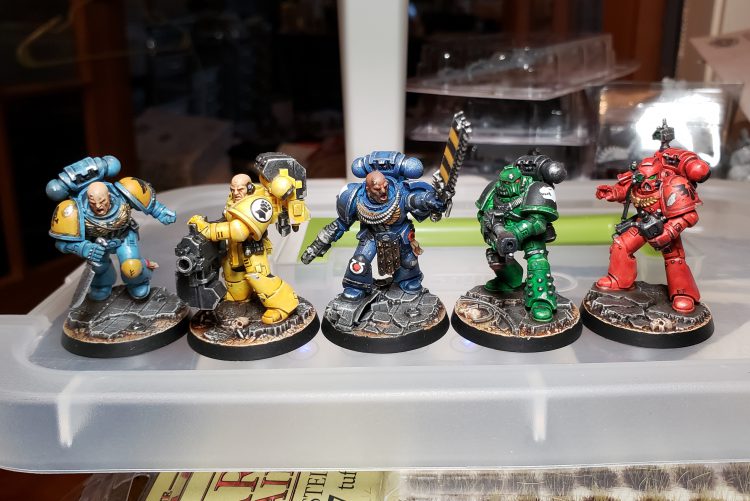 The past fortnight was mostly productive, finishing off the Bladeguard command units from the Indomitus boxset. Having finished of two marine halves, it was time for a family photo and painting something other than marines.