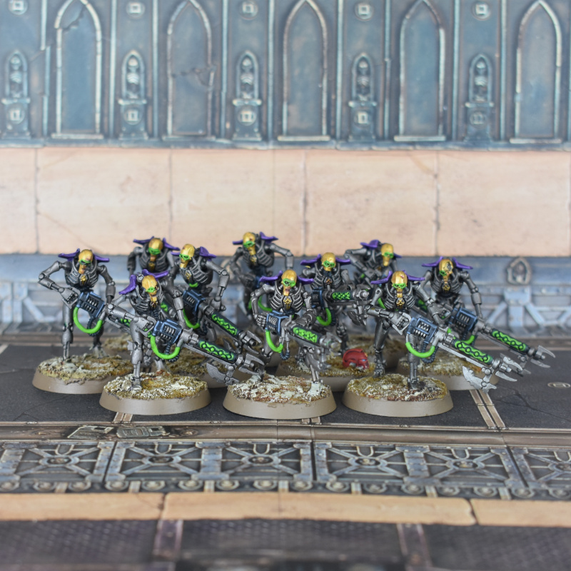 Hobbying (especially I find in this pandemic era) can sometimes be an odd experience where you zone out and wake up with more painted models, and that's how I've been with a lot of this Necron infantry. I think at this point it's a bit like road blindness where you've seen the same thing so often your brain just doesn't commit the event to memory. Painting up 60 Warriors has been rough, but there's light (probably green-tinted) at the end of the tunnel. These are my final 10 Gauss Flayer models, leaving me with 20 Gauss Reaper models to go (hopefully to be in a near-future hobby post).