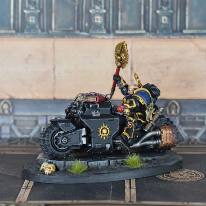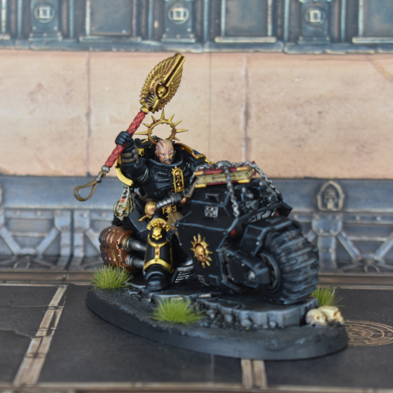 Finally there's the Primaris Chaplain on Bike. This is the model I was most excited about from the recent previews, and so of course I built and painted him immediately when he turned up. He's already done me proud by one-rounding Trajann in his first game yesterday.