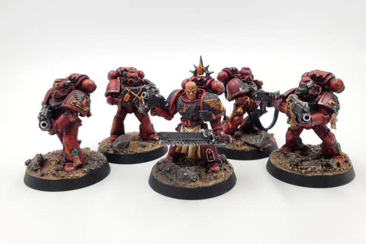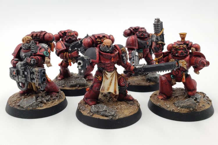 The rest of my time has been spent working on Space Marines - getting some reps in and working out a table-ready scheme for my Blood Angels. First up, I took a crack at the Space Marine Adventures board game minis. My plan was to practice some techniques - namely transfers, weathering & panel lining power armor, and hazard stripes. The main armor colors were all done with contrasts in various ways - either over a basecoat, glazed thin, or right out of the pot. The result looks great on the tabletop, and I'm excited to try the game out!