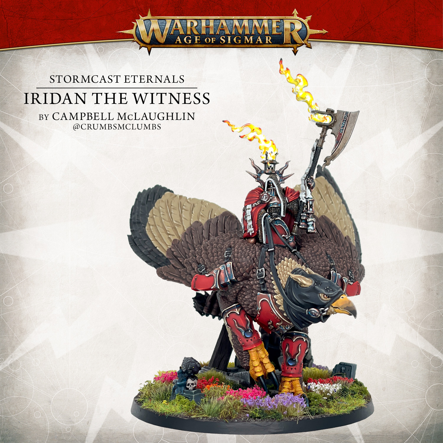 Warhammer Community roundup of Stormcast Eternals, with Keewa and myself joining some absolutely fantastic painters from around the influencersphere. It was my delight to paint Goth Birb and their enby rider here, even if it did involve laboriously highlighting every feather three times. If you're a drybrush and Constrast enjoyer, you'll be able to knock out this model remarkably fast, I imagine. As with so many thing, it'll be easier if you don't have my particular brand of brain poison coursing through your cranium.