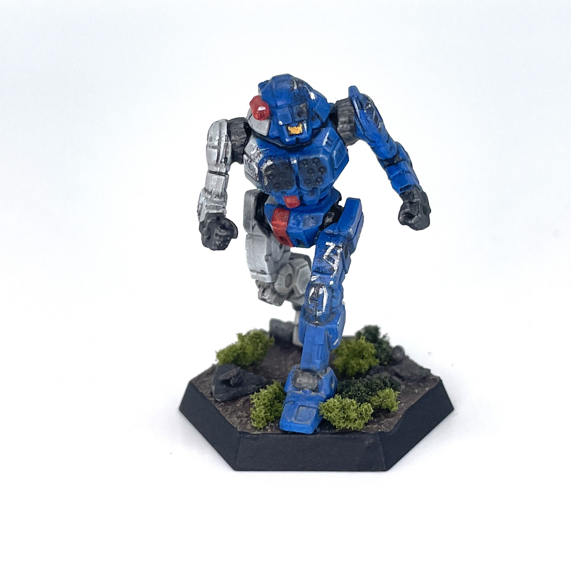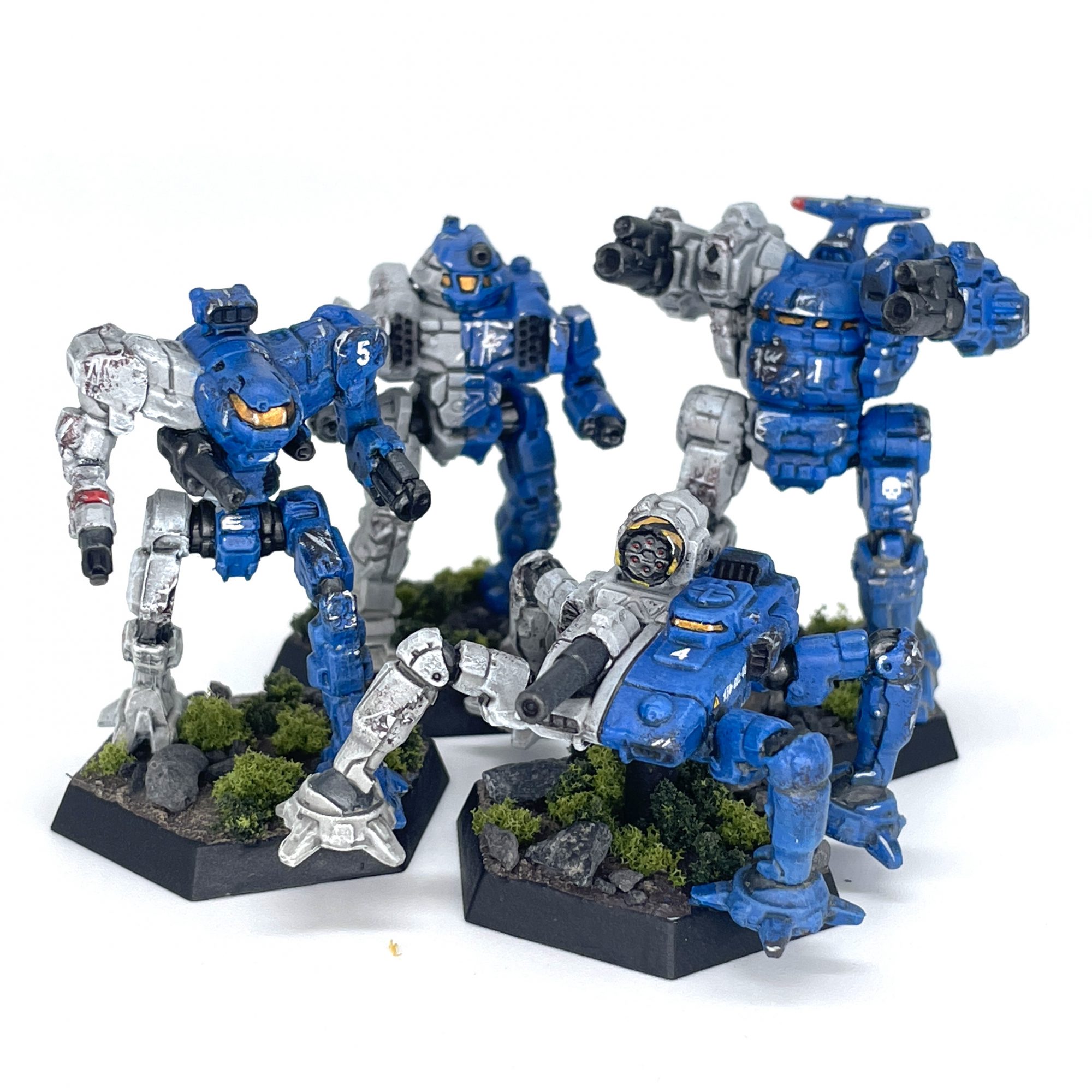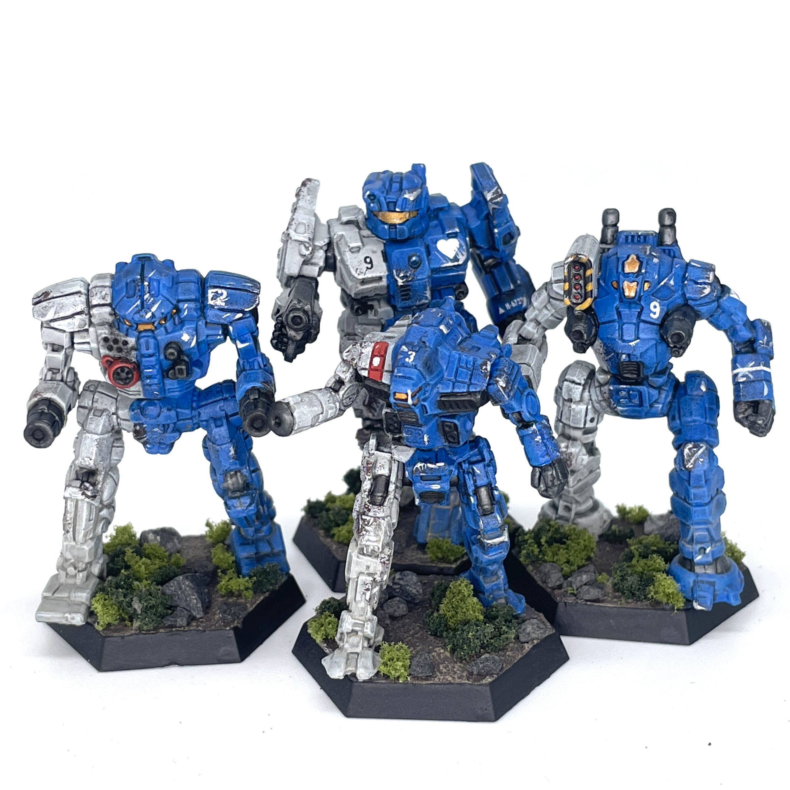 High on the rush of painting 6 models in as many days, I dug into my first models from the Battletech Mercenaries Kickstarter. This was my first time painting more than a lance or Clan Star at a time, batch painting a Tactical Squad-esque group of 9. It's not quite as relaxing as knocking out a single box, but it does get that backlog cleared out which is good enough for me. I've slowly been adding more detail to these as I paint them, with more use of spot colors and transfers. They add visual interest and verisimilitude, and if you're working through your own pile of idiot robots, I recommend you try something similar. Hell, we even wrote a