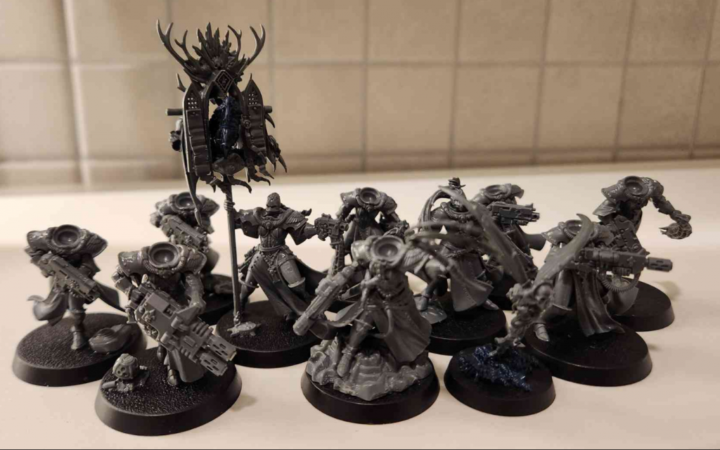 So, I made myself a completely unnecessary project. I’ve found a couple of collections of painted models second hand, and then I have filled in some of the gaps with some quick and dirty paint jobs for other models. This means I have models my kids can use that I can breathe easy about if (when) they accidentally break something. It also has the side effect of me having models around for new players to use as they start to dive into the game.