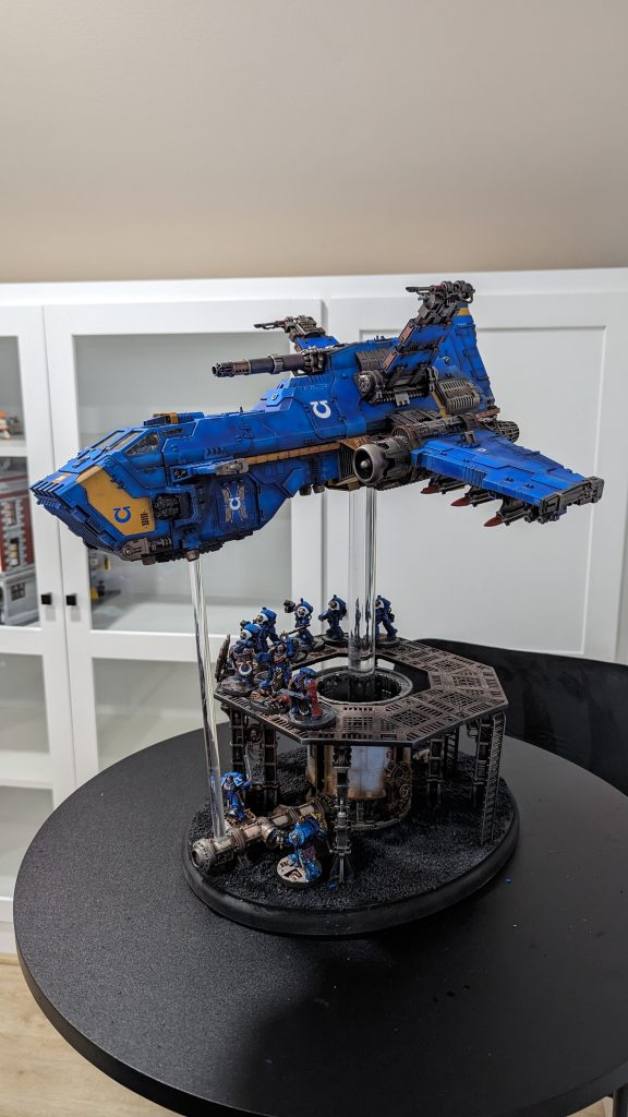 My friend Jeff also handed me a pair of drop pods I'd originally given to him years ago, as his Firstborn marines army stalled when we saw the first photos of Intercessors back in the dawn of 8th edition. Now that Primaris boys are allowed back inside the iconic drop pod, I was only too happy to spray these things blue and spruce the rest of the paint job. I kept things