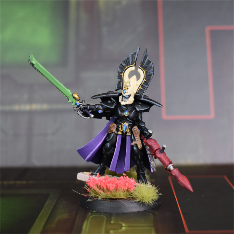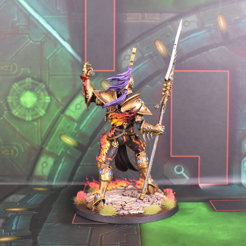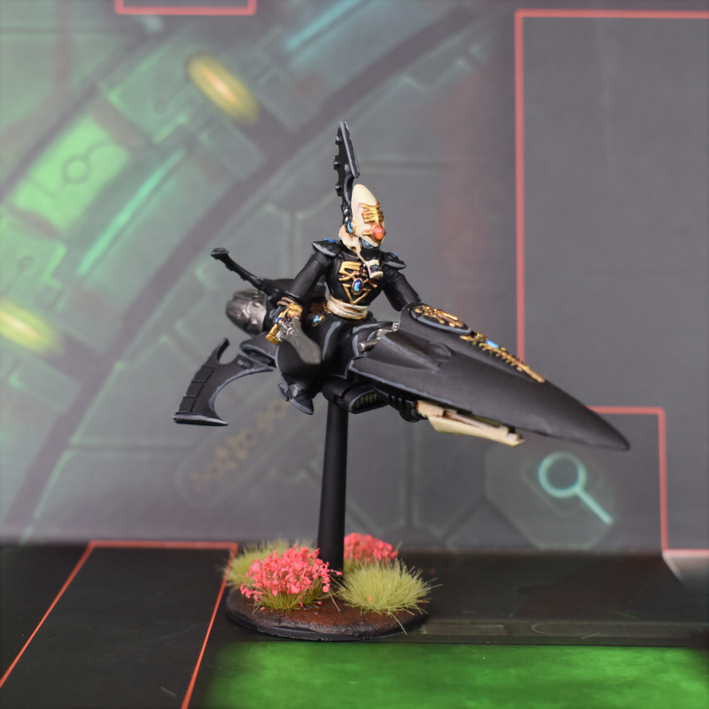 He was a ton of fun to build and paint, and I'm pretty happy with how he turned out. Weirdly it turns out that there is no Rune of Khaine on the Aeldari transfer sheet, which is annoying - instead I used the old Har Ganeth symbol from the Dark Elves transfer sheet in WHFB, which after all represents the Heart of Kahine as worshipped by the Witch Cults in that system. Now I just need to get the rest of my long-neglected Craftworlds army up to speed so I can get him on the table.