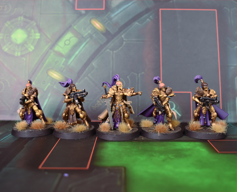These sisters were an absolute joy to paint. It took a while to settle on exactly which colors were going where, but I love the result and it looks great next to my other Custodes.