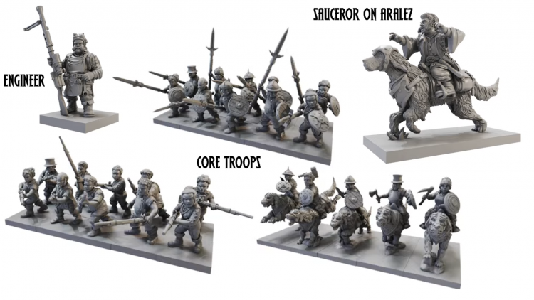 We saw the basic infantry configurations, the engineer hero, and a “Sauceror” on Aralez (giant ride-able dog), as well as the general Aralez cavalry unit.