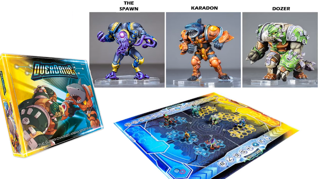 Overdrive is a gladiatorial, king-of-the-hill, WWE style board game spun off of Mantic’s DreadBall, a futuristic sci-fi sports game. Coming in September this year, the initial release will see a box game, with the 6 player models, board, dice, tokens & rules.
