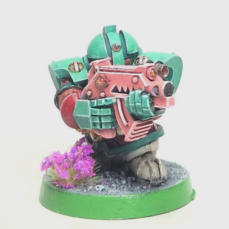 Roxin: The figure is absolutely brimming with character, from the pleasingly chunky shoulder pads to the angular take on a classic bolter, which encouraged me to push bright and bold colours. Painting was a doddle, with big clear surfaces and easy to access textures, though I would advise leaving the arms off. Unfortunately the build was much more challenging. There was a fair bit of flash that needed cleaning and an annoyingly large gap between the shoulder and right arm that needed a big wodge of milliput (other epoxy putties are available) to remedy. Overall though, very pleased with my squat adult son.