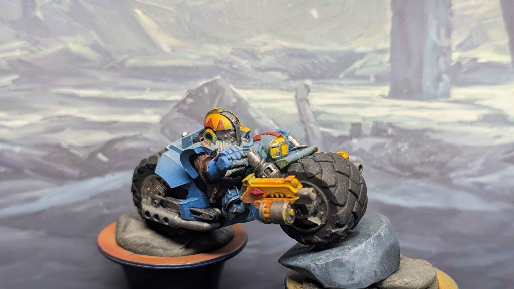 I engineered the bikes with the idea of building out loads of variants and accessories for them – I’m working on a couple of special riders at the moment as people keep asking for the Akira-slide biker as a miniature. I’ve been puzzling over Röknaut Trikes too – the rear tyres on the regular bikes are so wide that simply putting two of them side-by-side on the back makes the trike look more like backwards steamroller, so I’m trying to slim them down enough to get beefy exhausts and maybe weapons mounts too.