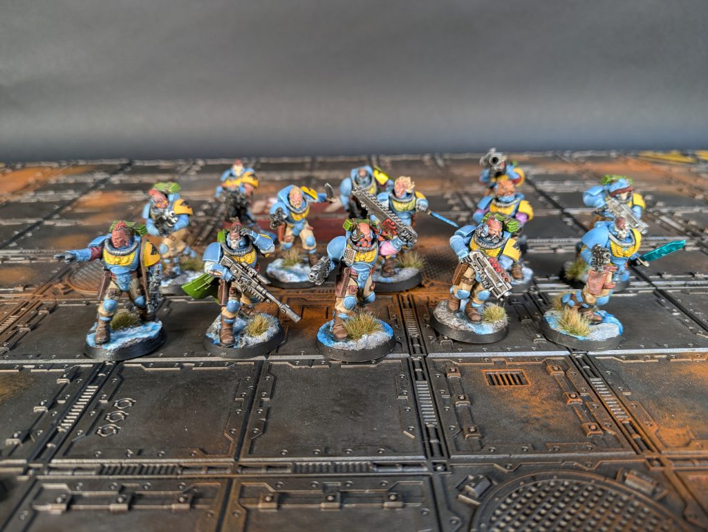 KS: So I’ve loved Scouts since they came out; my first 40k miniatures ever were the old metal Space Wolf Scouts in blister packs and I painted up my current ones as an ode to those third edition little men. For how to play them, I’d say that your goal as Scouts is to break a flank and rack up free secondary VPs. I ran