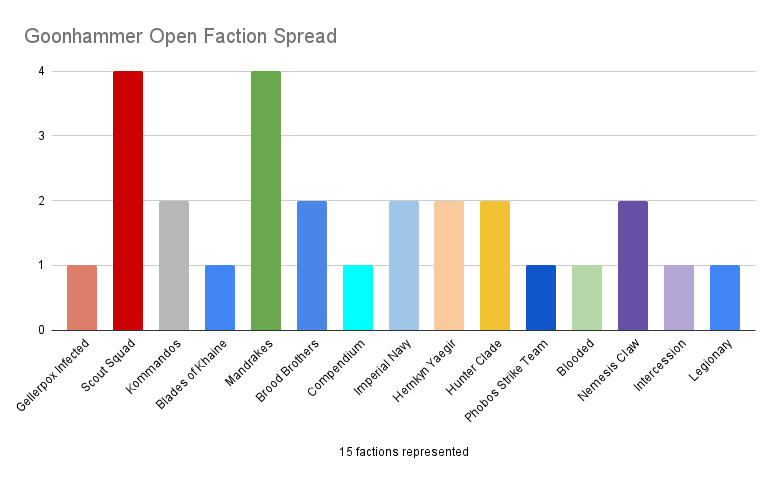 In a fairly large surprise, the top 8 features a full 8 factions! Really showing that win rate is only one part of the conversation, especially in a game with such tactical complexity. I really do think that it might be the best time to play the game, as nothing is truly set in stone as far as the meta goes. With the top three being Gellerpox, Scouts, and Kommandos, a good pilot really does set the stage.