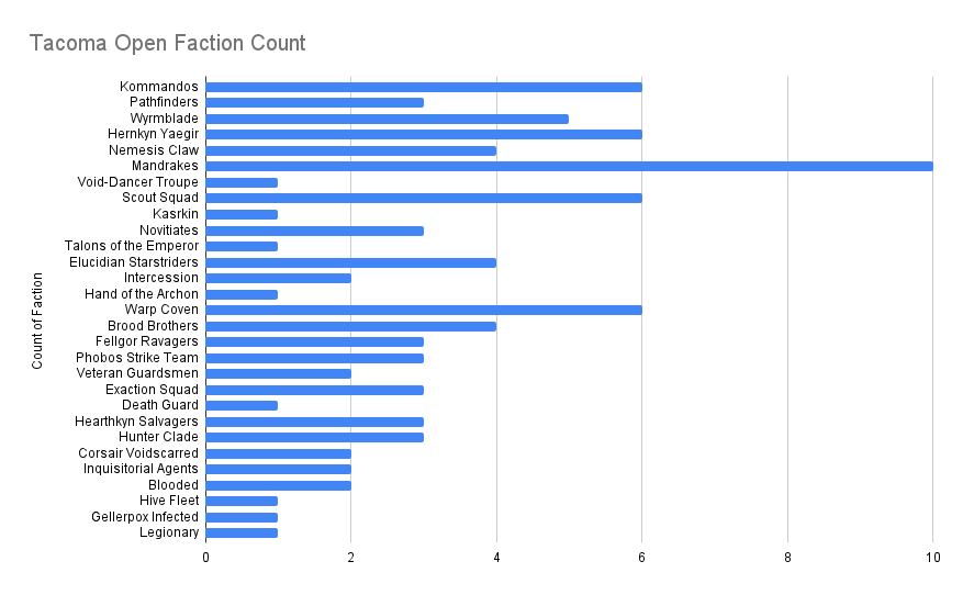 It seems the passage of a year has truly allowed the PNW region to grow in leaps and bounds, adjusting to the meta and picking up the Mandrakes as the most popular faction at the tournament by far! There were also a surprising number of Warp Coven, and Hernkyn Yaegirs out in force, showing off the weirder rules of the game. It's also encouraging to see that while meta teams were everywhere the faction diversity still remains pretty present. Especially when we look at the conversion to the top 8, after 4 rounds of play.