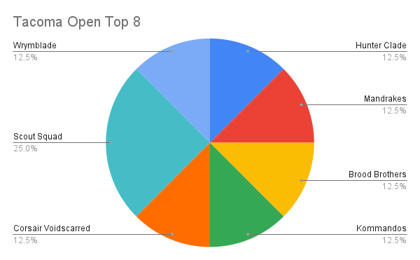 Our top 8 remains fairly diverse with seven different factions dotting the landscape. 33% of the scouts in attendance made the conversion to the top 8. While a single Mandrake player converted to the top tables, Adrian did eventually take the W. For as much as there are top tiers in the Kill Team meta, it does seem like many teams can still be within striking distance! With that said let's take a closer look at those in contention for the big accolades!