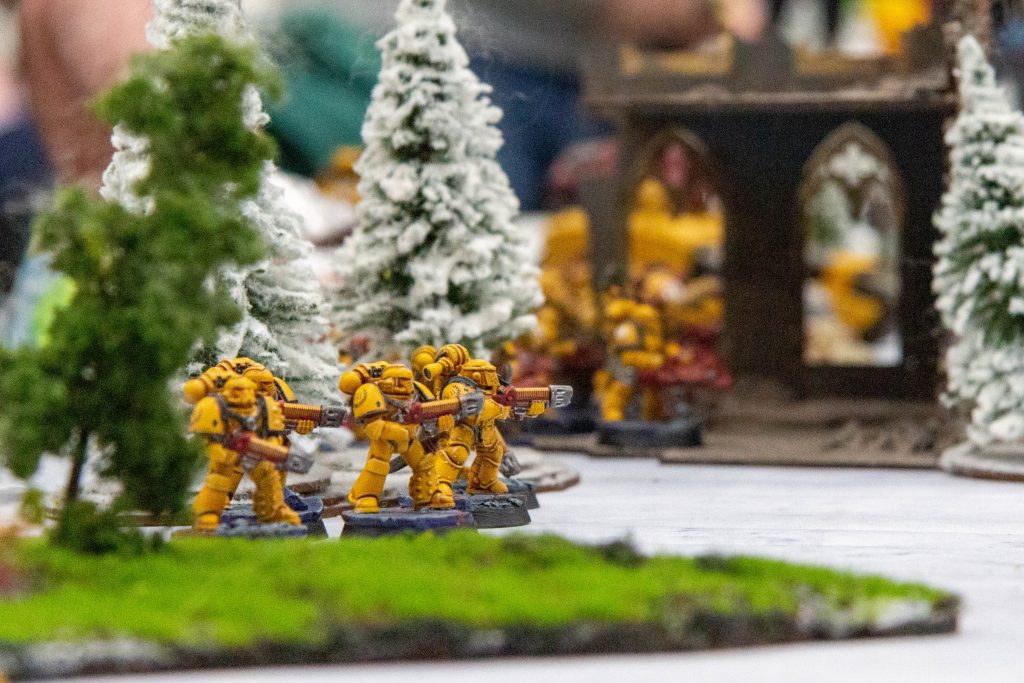 An Imperial Fist Plasma Support Squad makes it way into a snowy region at Goonhammer Open Horus Heresy 2022