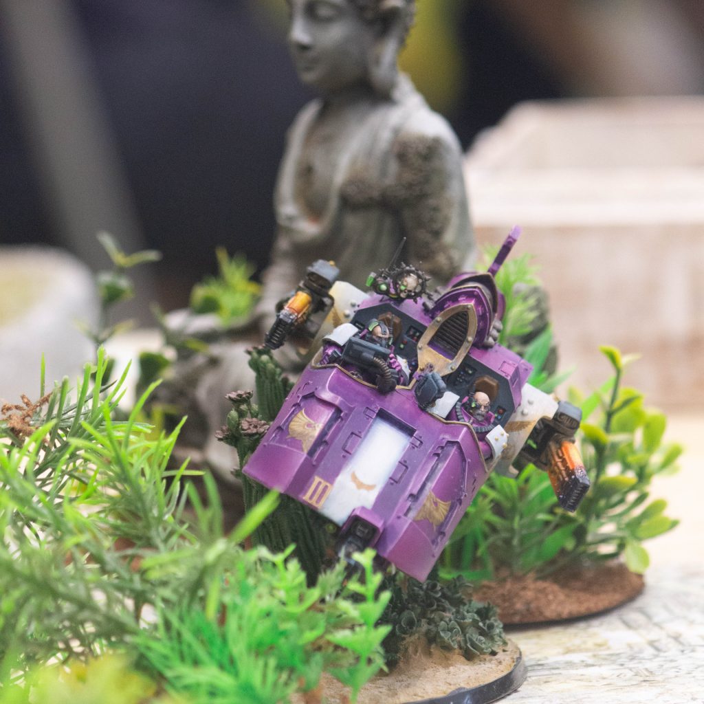 Emperor's Children Javelin Speeder blasts through the undergrowth at Goonhammer Open Horus Heresy 2022