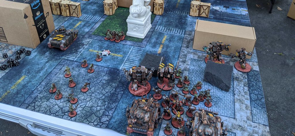 With all that painted I challenged a buddy to an outdoor game so I could run all my armor on one table - I lost pretty miserably on objectives but I got some good licks in.